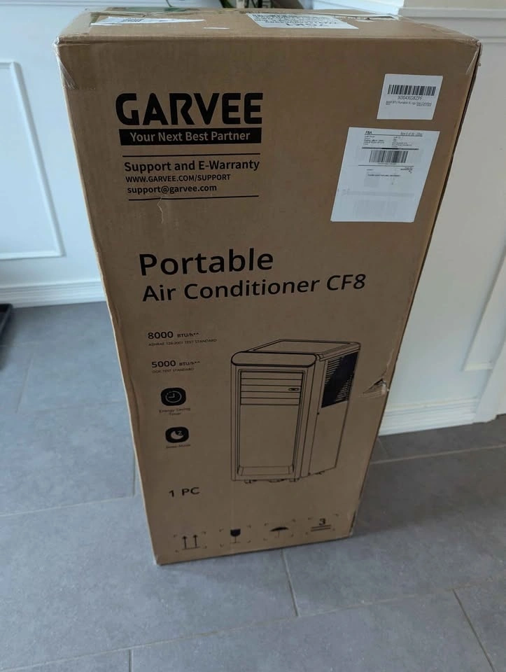 Brand new in box. This 8000 BTU portable AC quickly dispels intense heat, providing fast and effective cooling for spaces up to 350 sq ft—such as bedrooms, home offices, or apartments—keeping you cool and comfortable during hot summer days. It also functions as a fan and dehumidifier, reducing indoor humidity for all-round comfort.