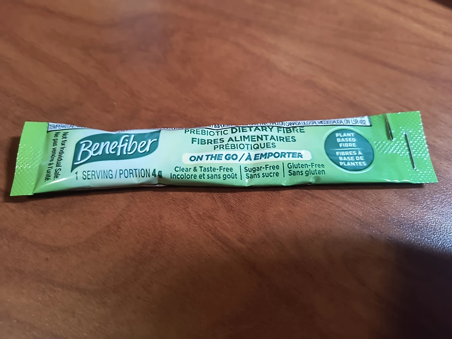 Benefiber single serving of prebiotic dietary fibre. It's plant-based, sugar-free, and gluten-free. This portion is clear and taste-free. It's convenient for on the go use!