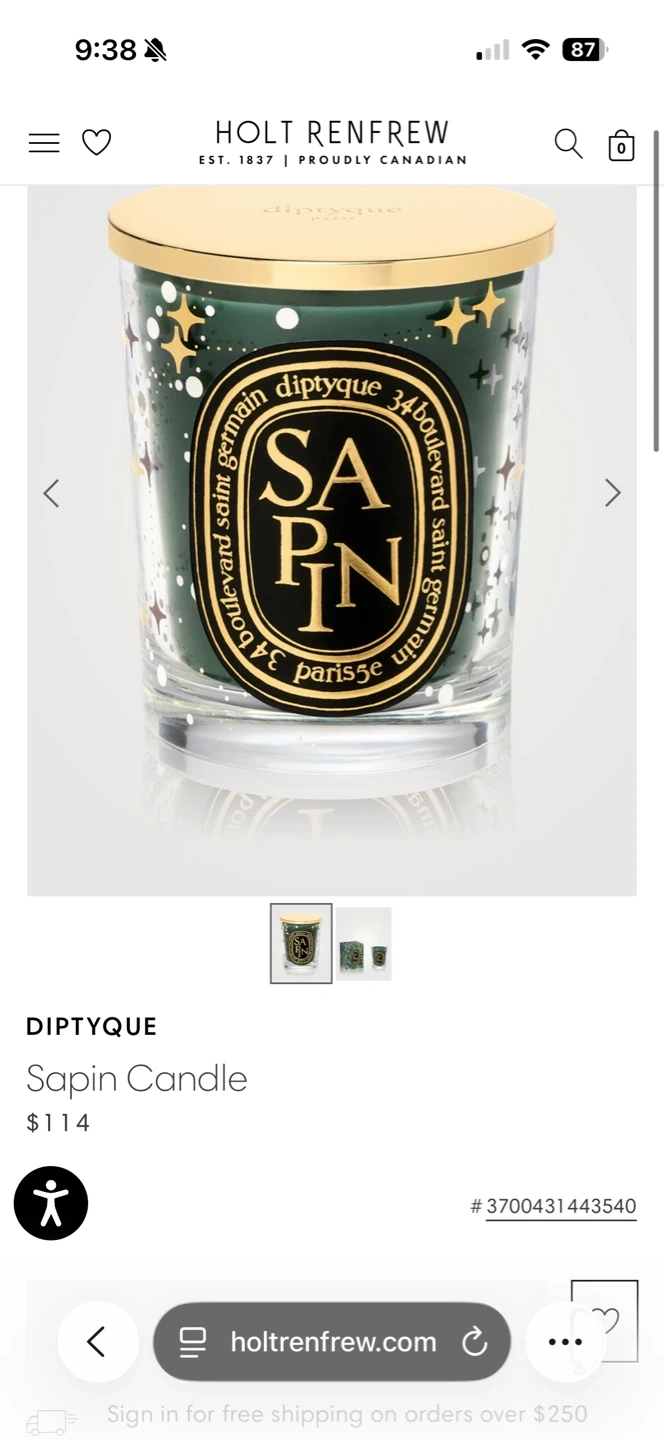 1 / 51 / 5Buy & SellNEW Diptyque Sapin Scented Candle 190gNEW Diptyque Sapin Scented Candle 190g$55This is a Diptyque Sapin scented candle. It weighs 190g and measures 6.5 oz. Purchased for $100+ Pickup: Yonge/FrontConditionNewWHERE TO MEETYonge Street & Front Street WestView MapSELLERverifiedSamUnion Station1538 reviews1 chats·1 favorites·14 viewsSEND CHAT TO SELLERHi Sam! I’m interested in your listing.Hi Sam! I’m interested in your listing.Get the Karrot app to chatSign In to chat
