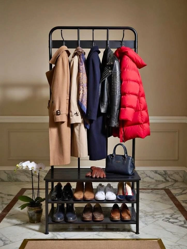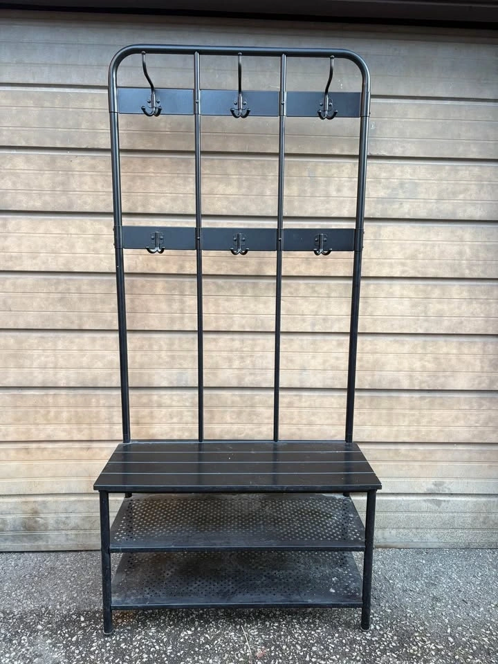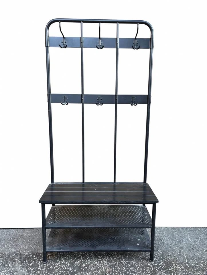 Black Metal Hall Coat Hanger with Bench & Shoe Storage