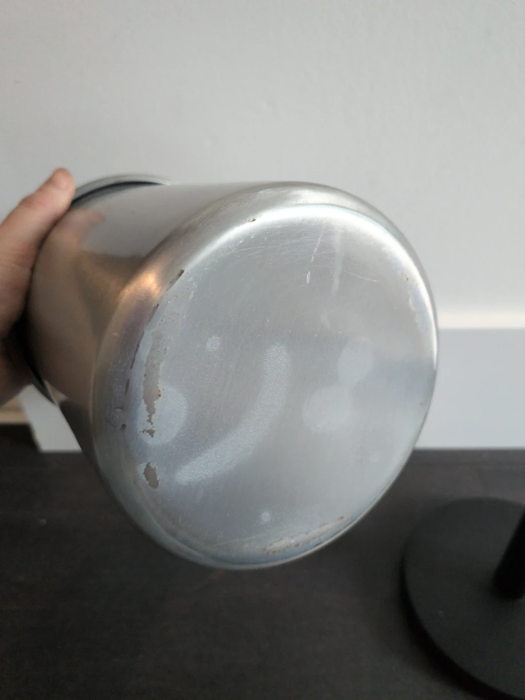 Stainless steel kitchen utensil holder with a black paper towel holder. This set includes one metal bin and one stand.