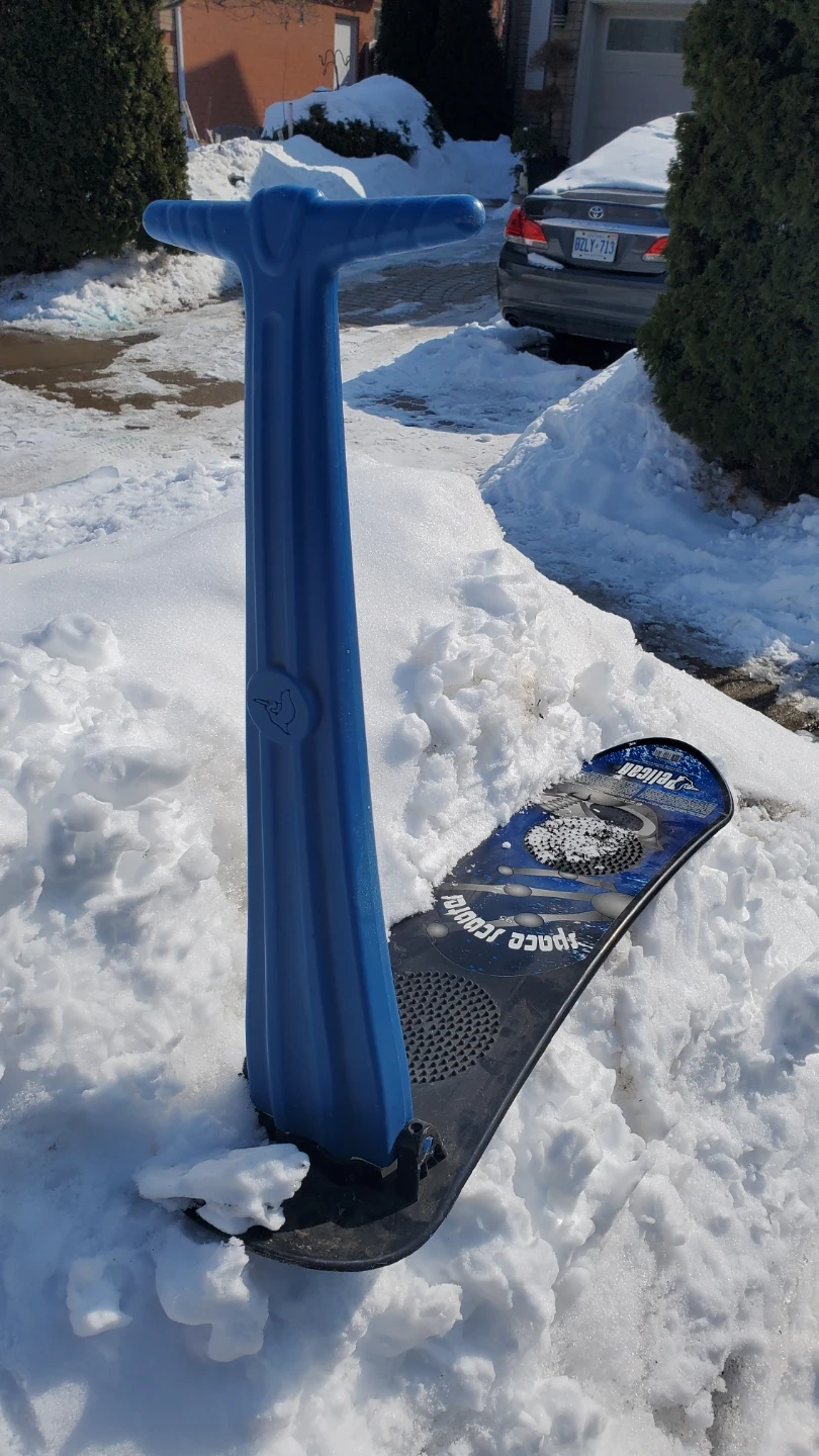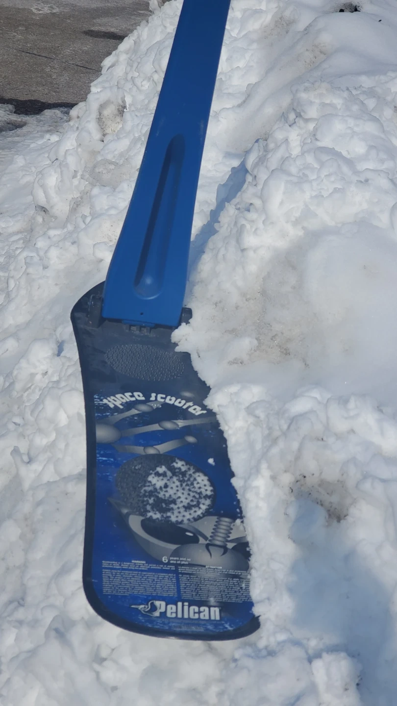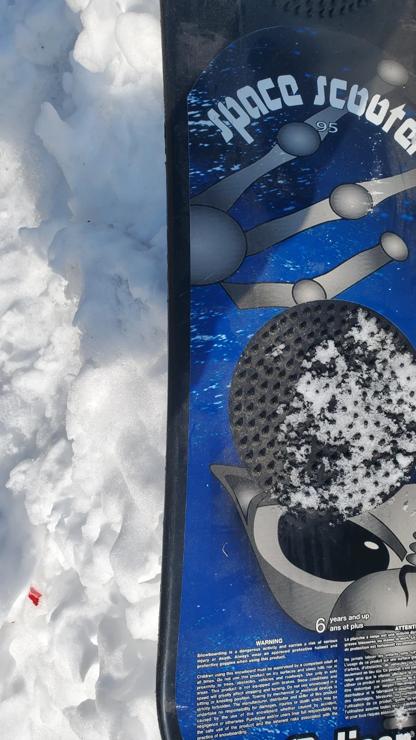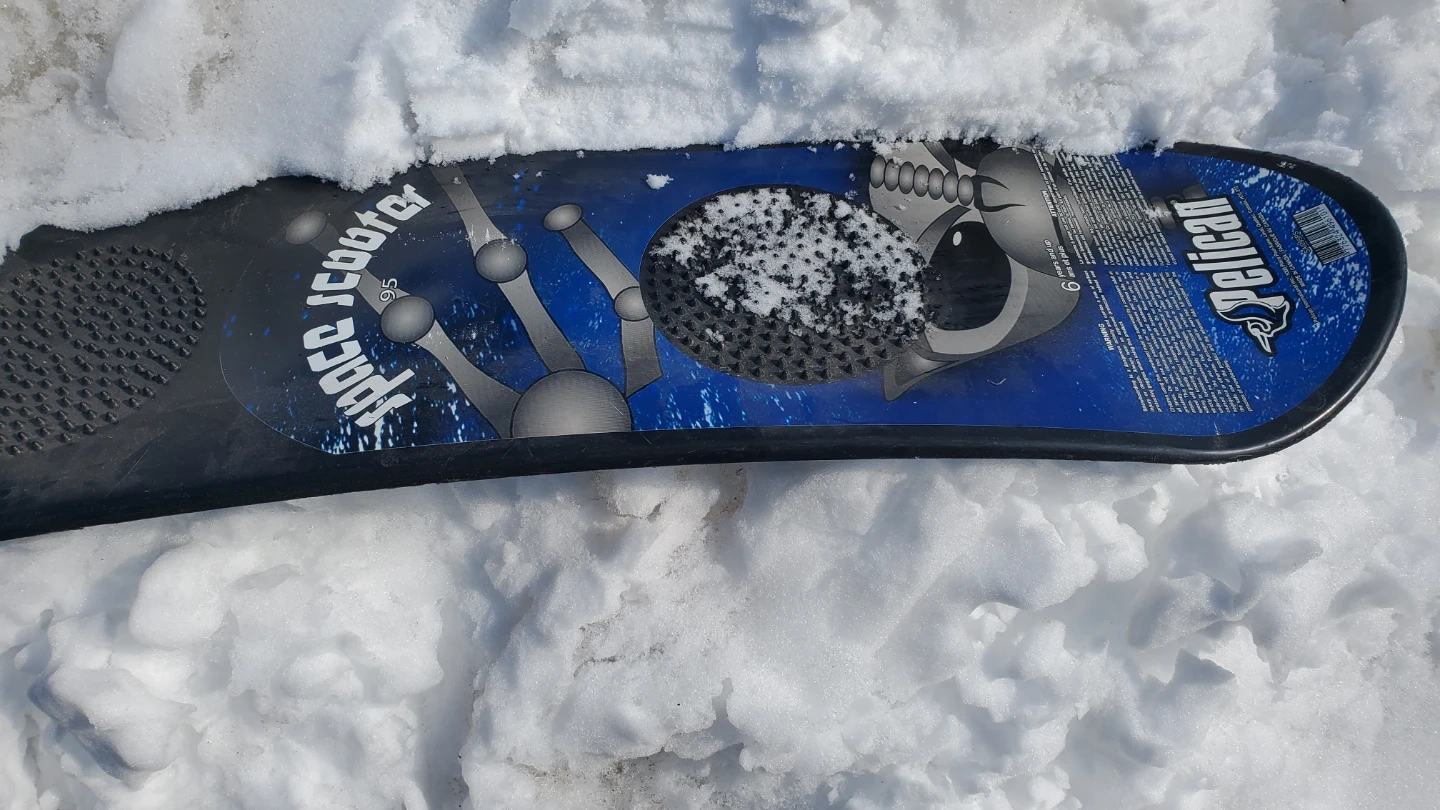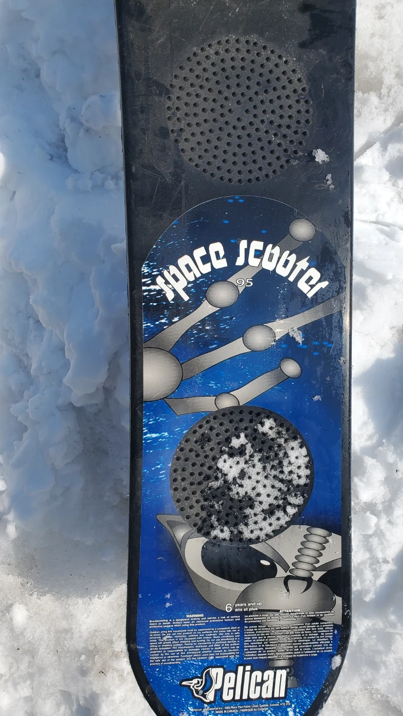 This Pelican Space Scooter is a fun way to ride on the snow. It's designed for ages 6 and up. Features a durable plastic deck and a blue handle for steering.