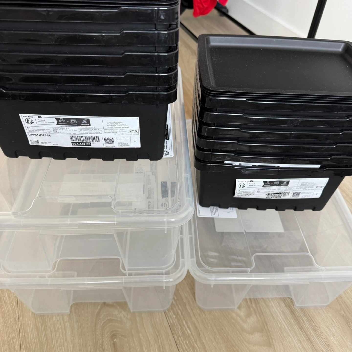 Buy & SellBinsBins$30Ikea bins 11 Black bins with 7 lids 3 clear bins all with lids $30 OBOWHERE TO MEETCheck LocationView MapSELLERverifiedAmiel XavierKeswick Area650 reviews0 chats·1 favorites·19 viewsSEND CHAT TO SELLERHi Amiel Xavier! I’m interested in your listing.Hi Amiel Xavier! I’m interested in your listing.Get the Karrot app to chatSign In to chat