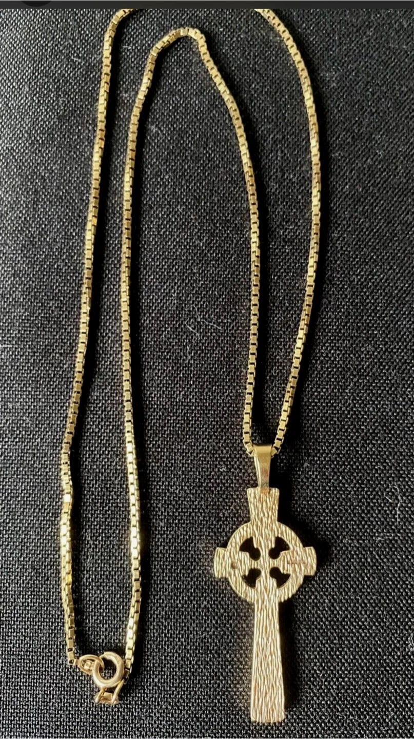 Buy & SellVintage Celtic Cross pendant and chainVintage Celtic Cross pendant and chain$1,500Vintage a 9k yellow gold, total weight 14grams.ConditionGoodWHERE TO MEETCheck LocationView MapSELLERJojoBrampton E28818 reviews0 chats·0 favorites·17 viewsSEND CHAT TO SELLERHi Jojo! I’m interested in your listing.Hi Jojo! I’m interested in your listing.Get the Karrot app to chatSign In to chat