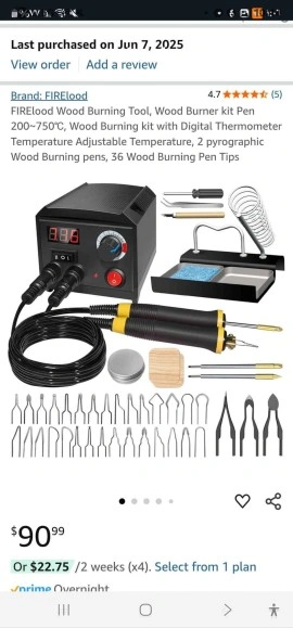 Selling a FIRElood wood burning tool kit! It includes the wood burner pen, digital thermometer, and 36 wood burning pen tips. Originally bought for $90.99