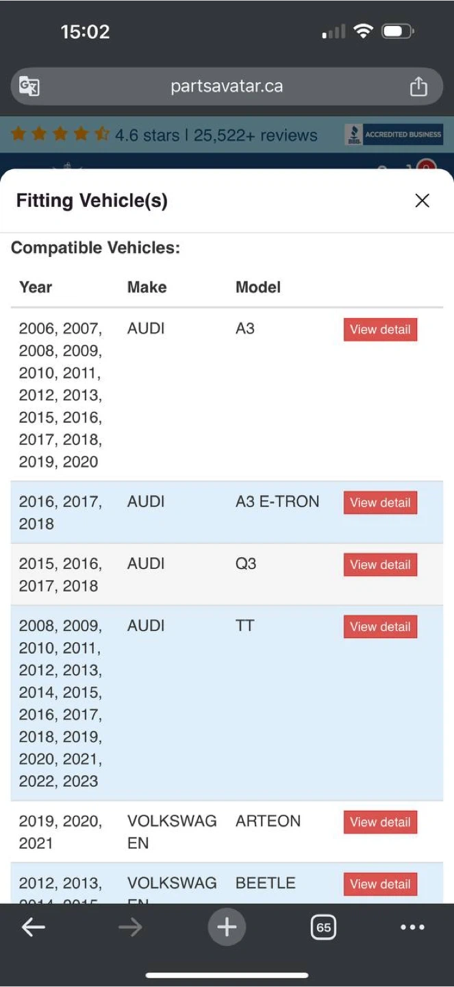 • Audi A3 / TT / Q3