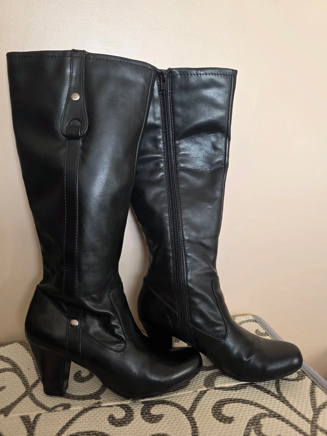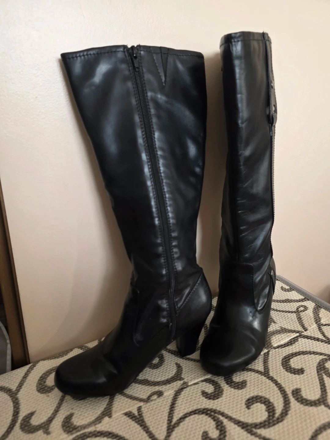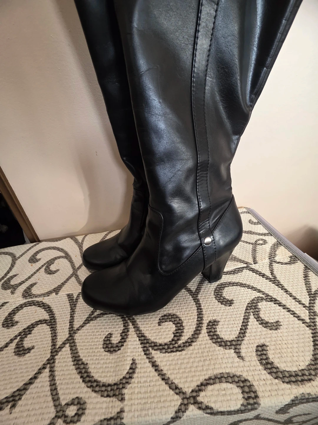 Knee-high boots by Natural Soul, a brand by Naturalizer. Made with a man-made upper and man-made outsole. These black boots are a size 7 medium.