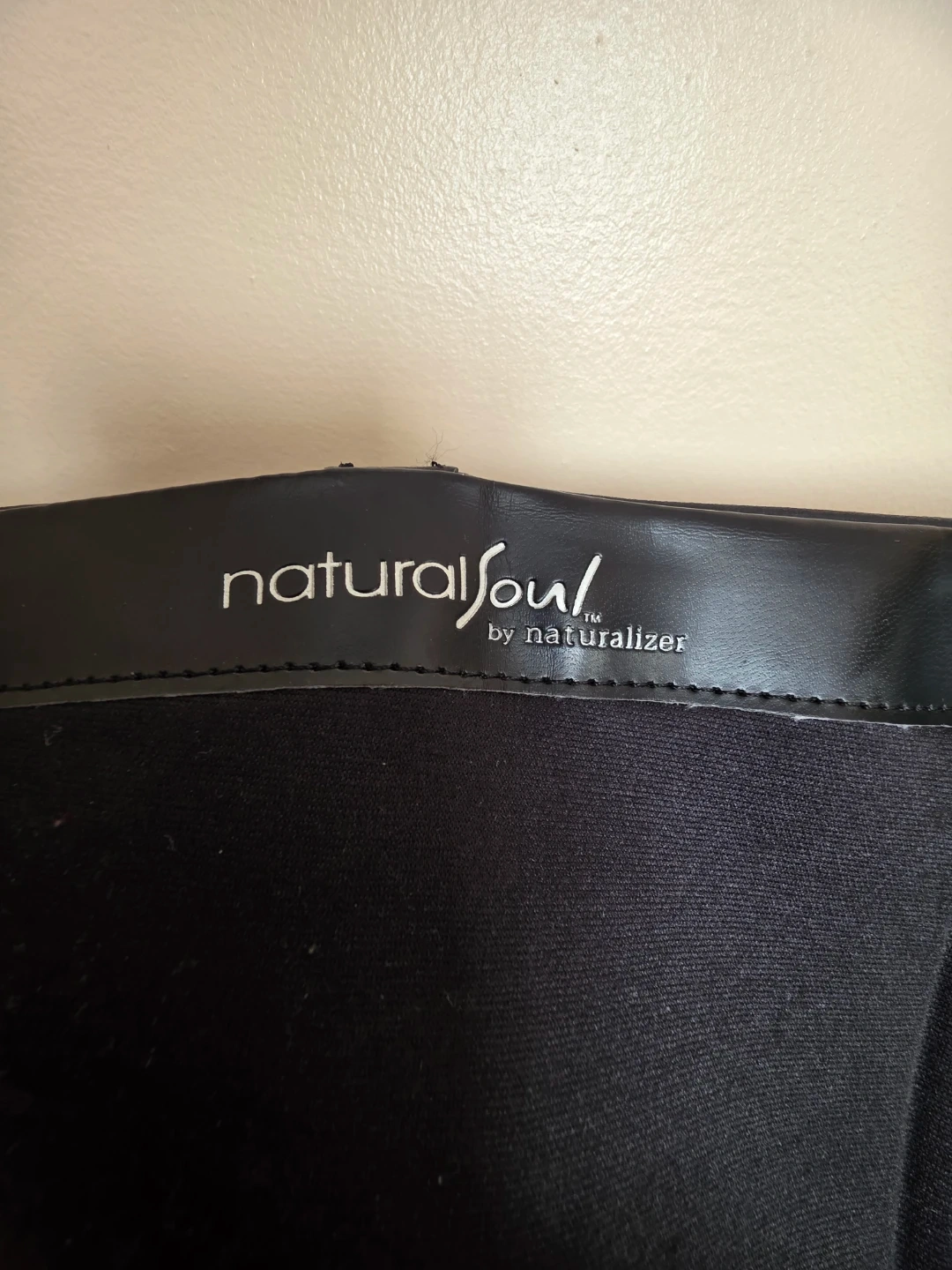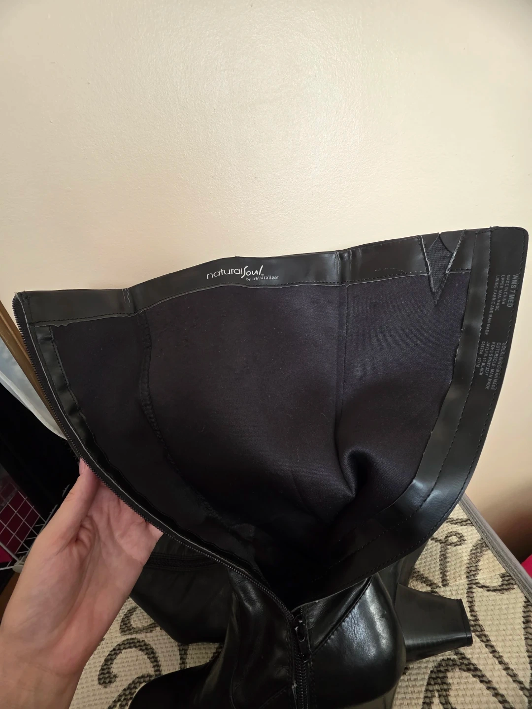 Knee-high boots by Natural Soul, a brand by Naturalizer. Made with a man-made upper and man-made outsole. These black boots are a size 7 medium.