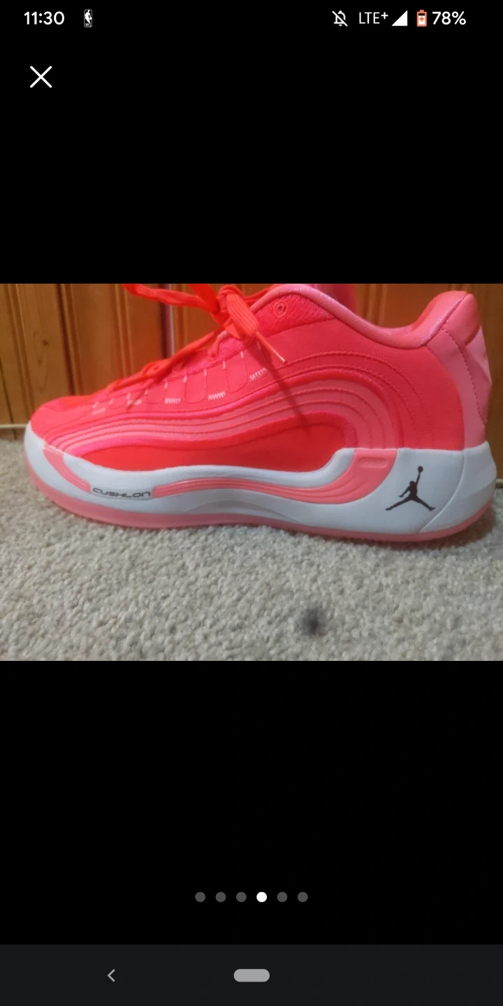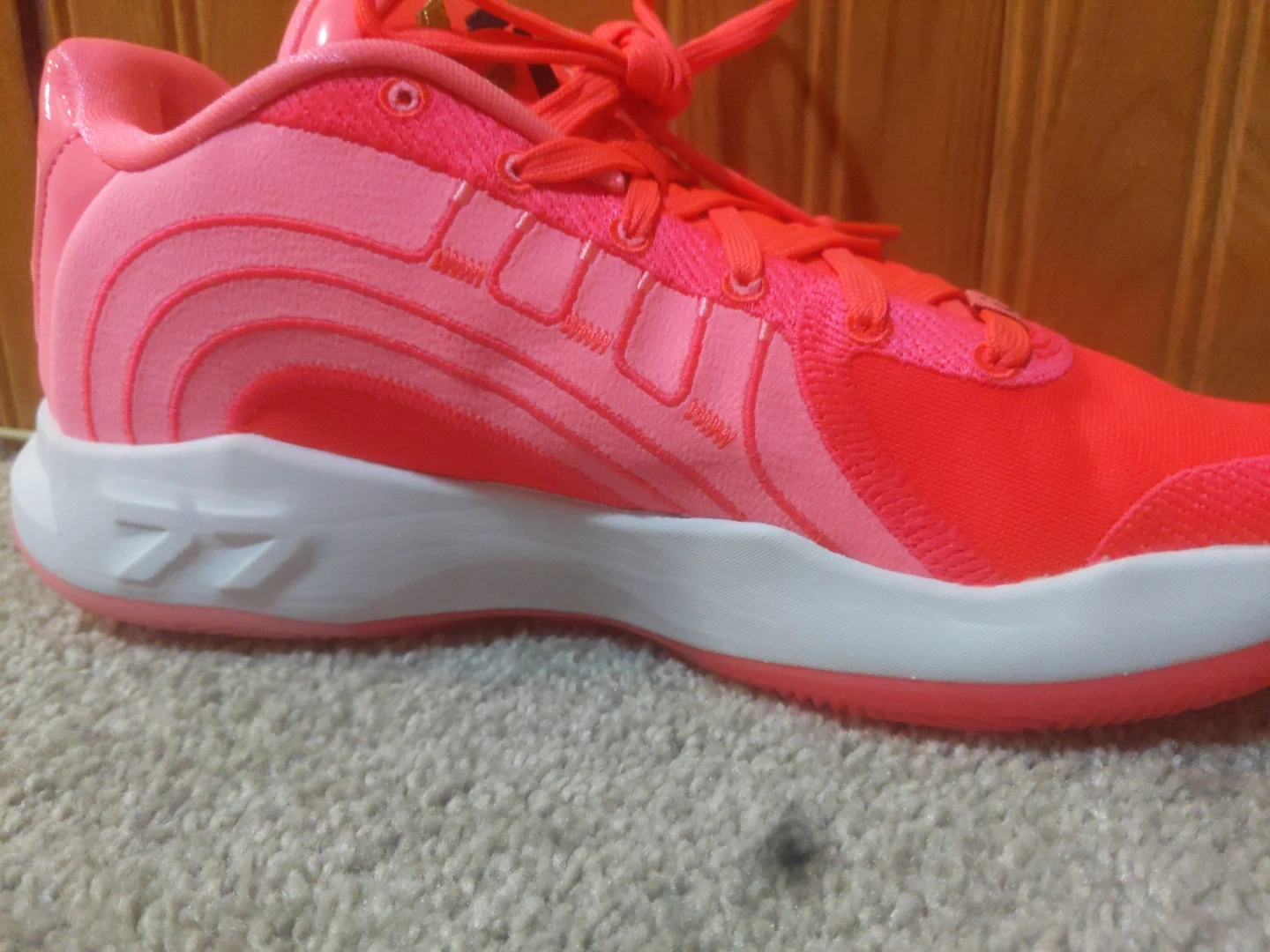 Kids' Jordan Luka 4 basketball shoes in a vibrant pink colour. These shoes feature a lace-up closure for a secure fit. They come in the original box.