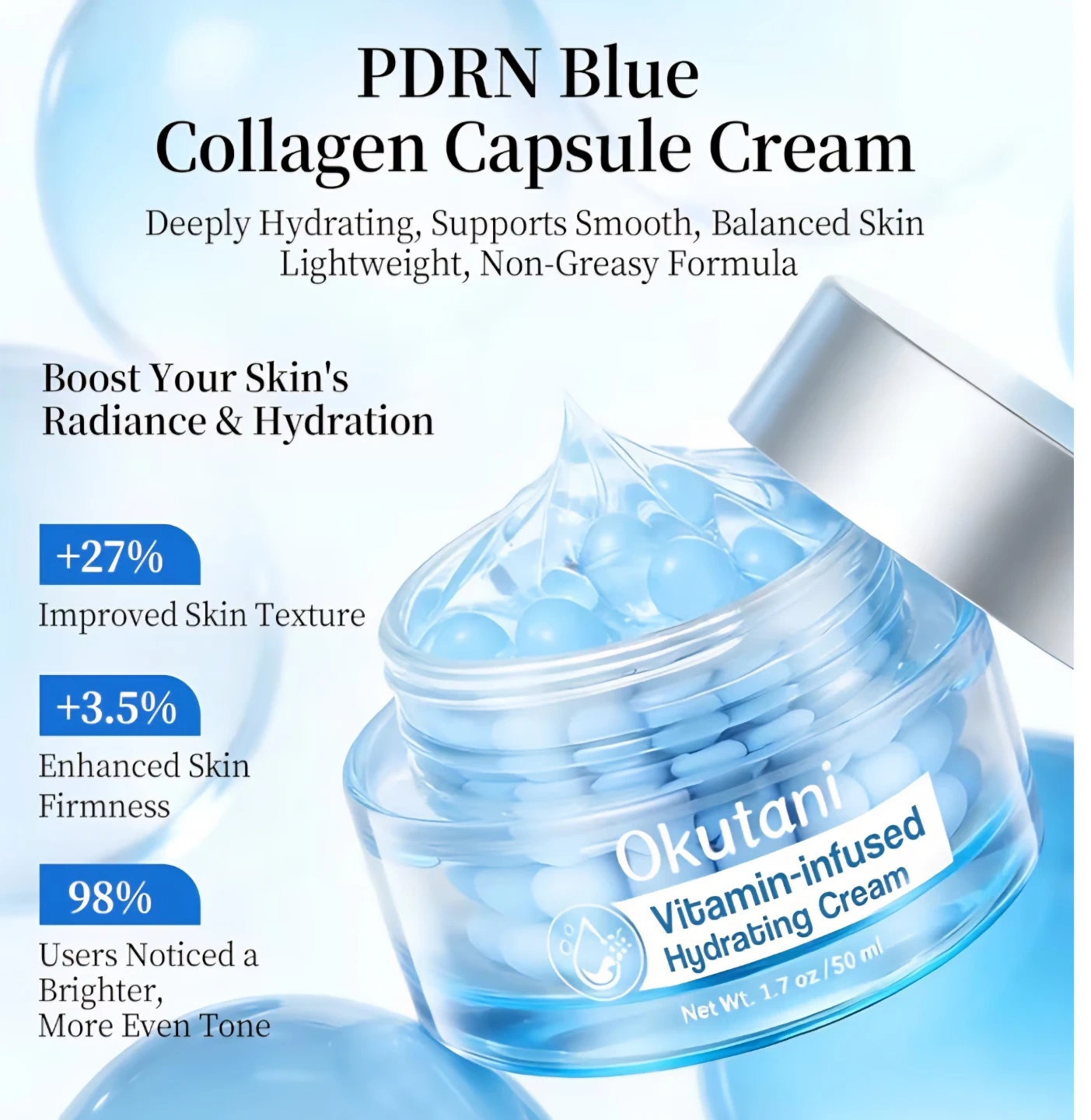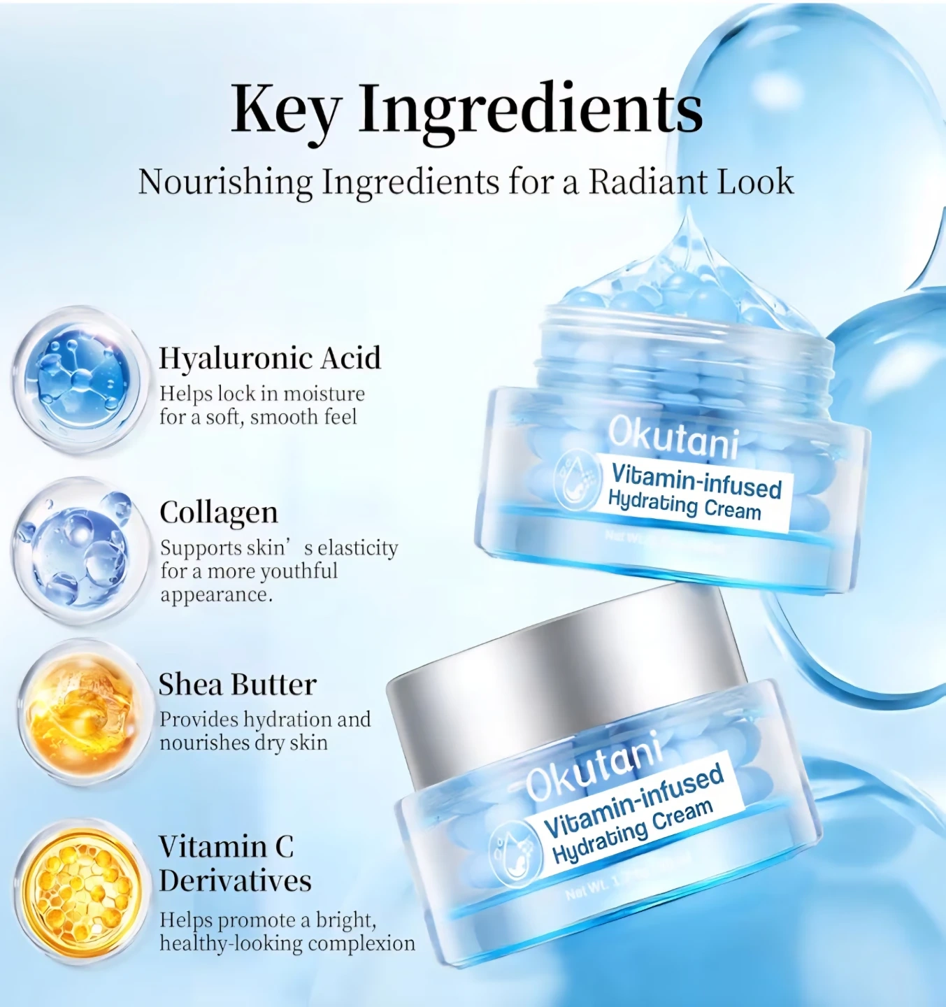 Okutani Collagen Jelly Face Cream, Deep Hydrating Moisturizer with Freeze-Dried Hydrolyzed Collagen.