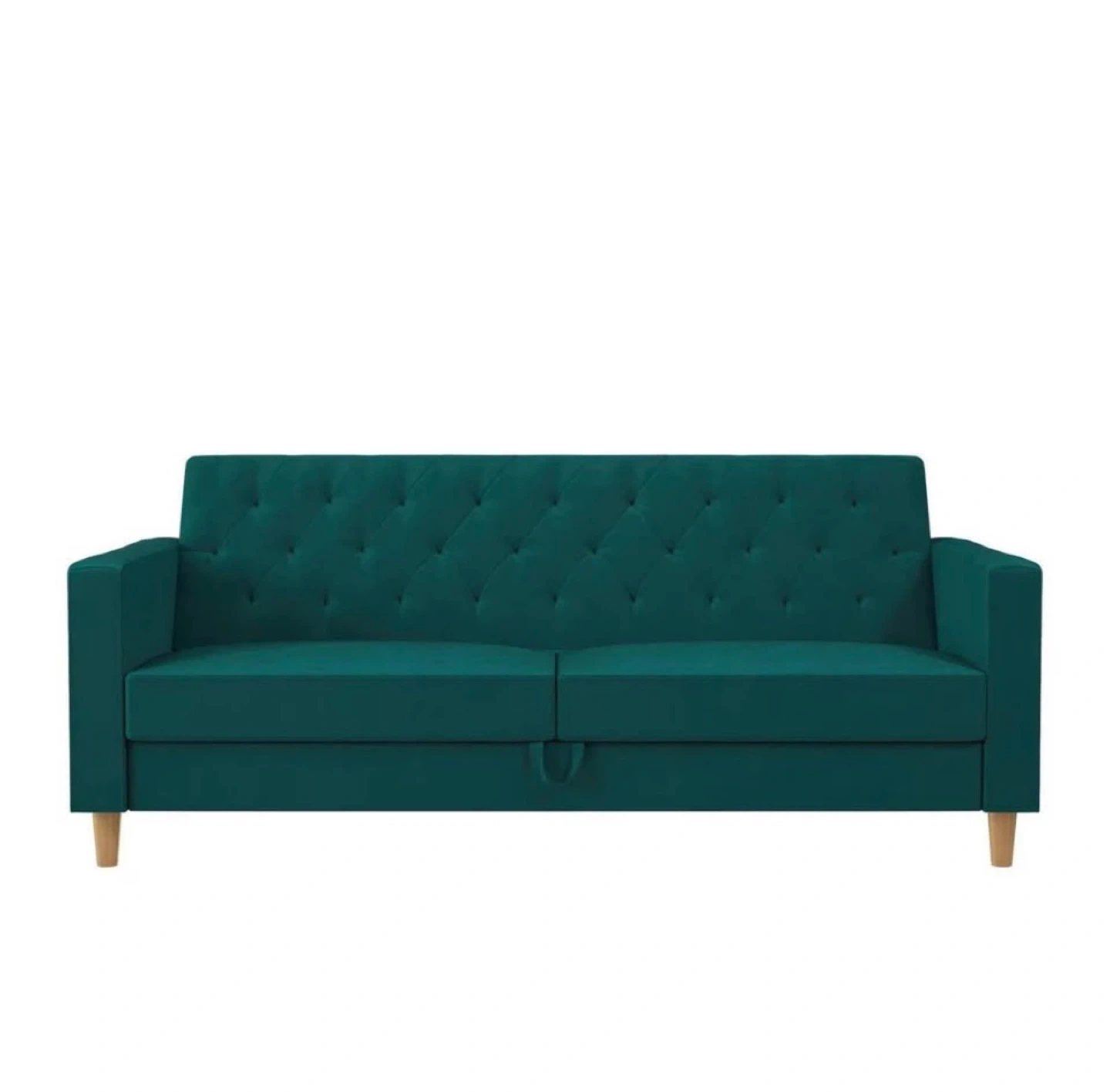 Teal Velvet Futon Sofa Bed with Tufted Design