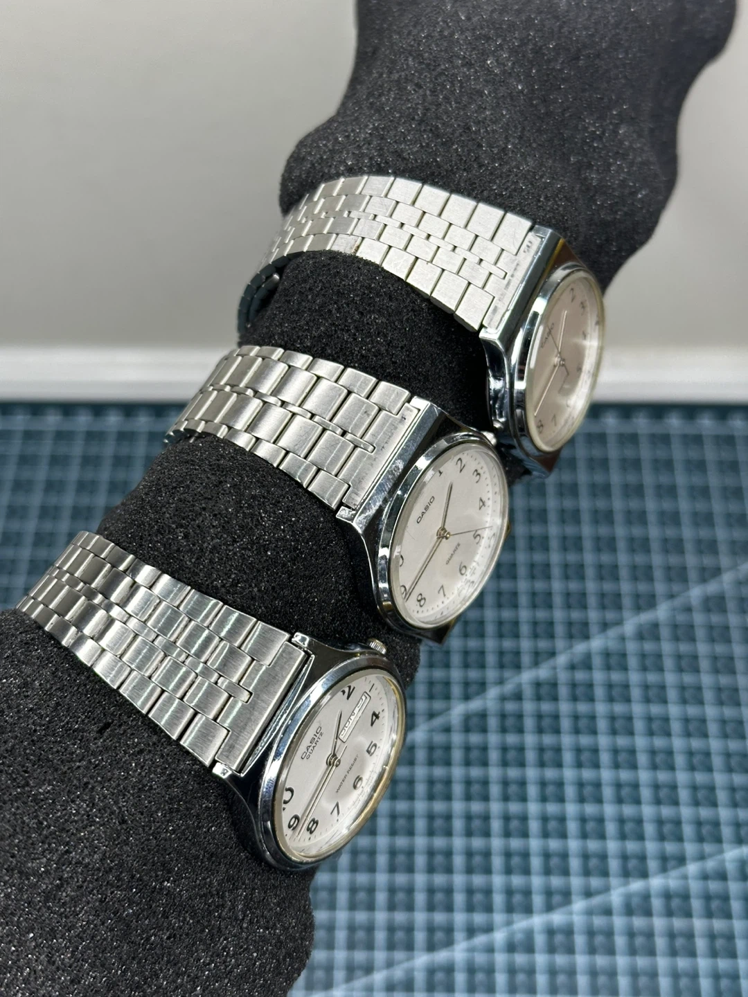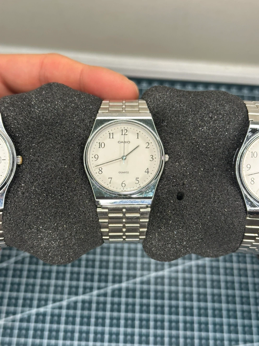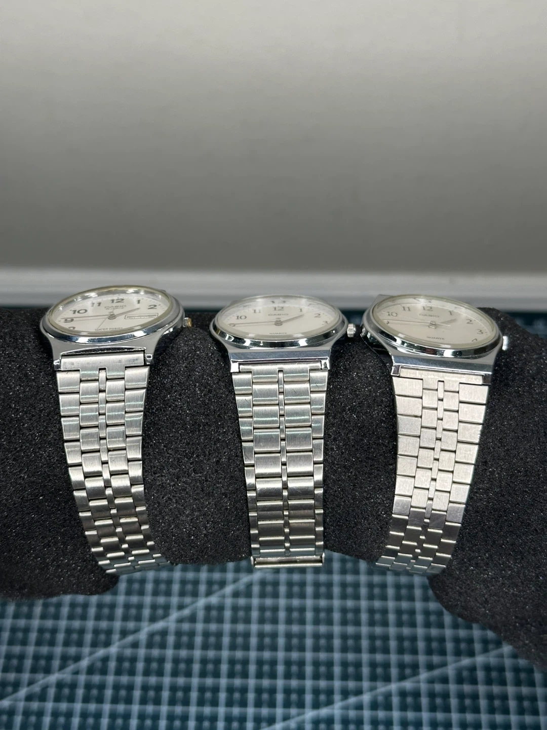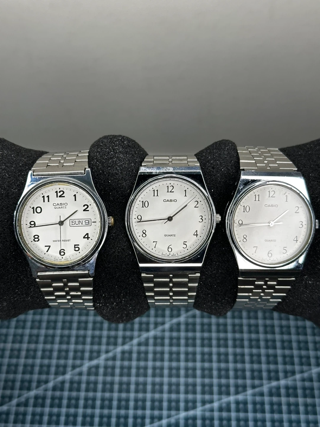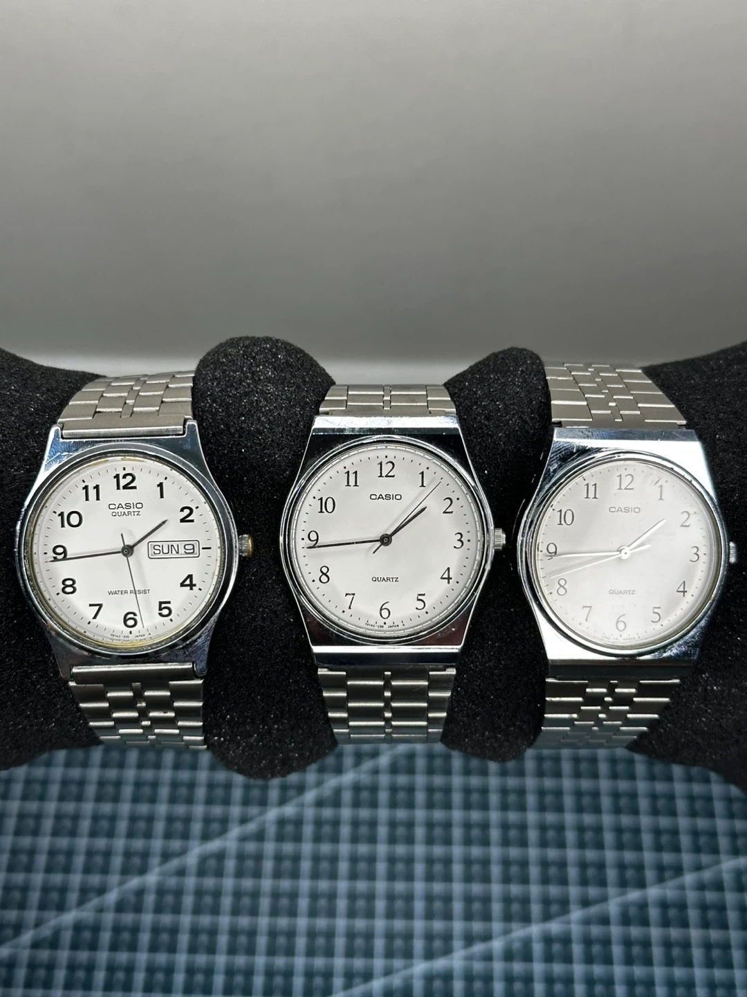Selling a set of three Casio Quartz wristwatches. They all have a silver finish and are in good condition. Perfect for someone who appreciates classic timepieces!