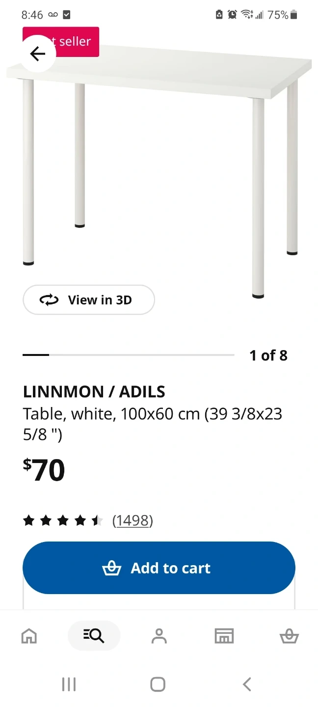 🥕IKEA LINNMON / ADILS White Table (100x60 cm)