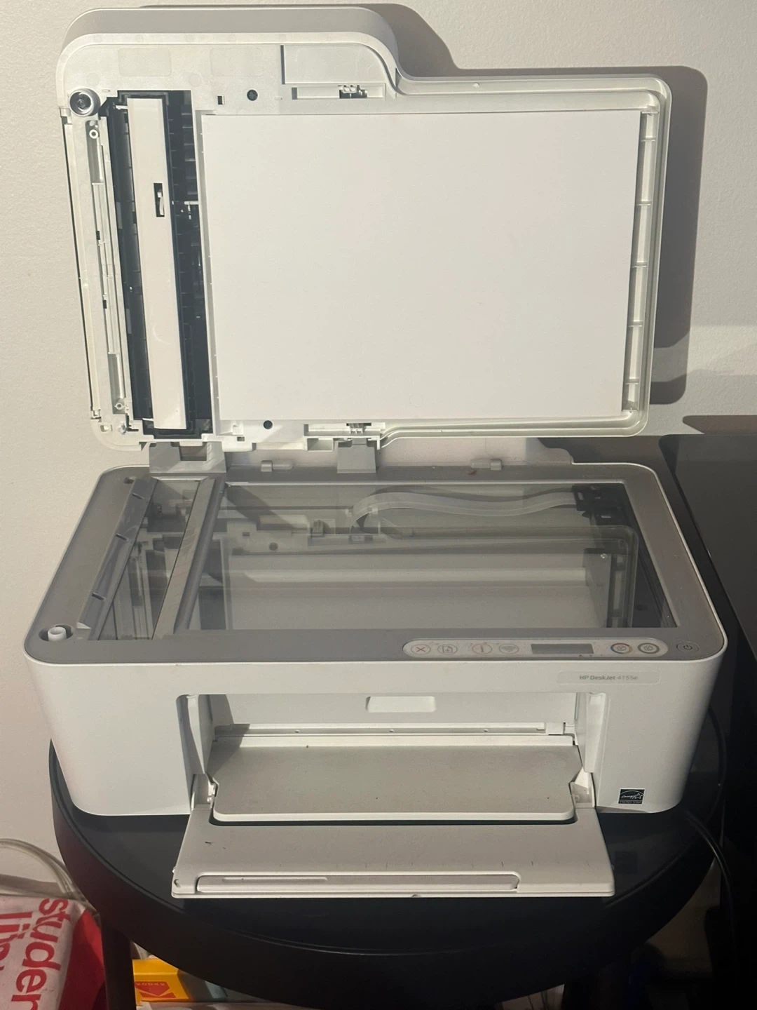 Selling an HP DeskJet 4155e printer. It's in good working condition and ready for a new home office! It's a great all-in-one printer, scanner, and copier