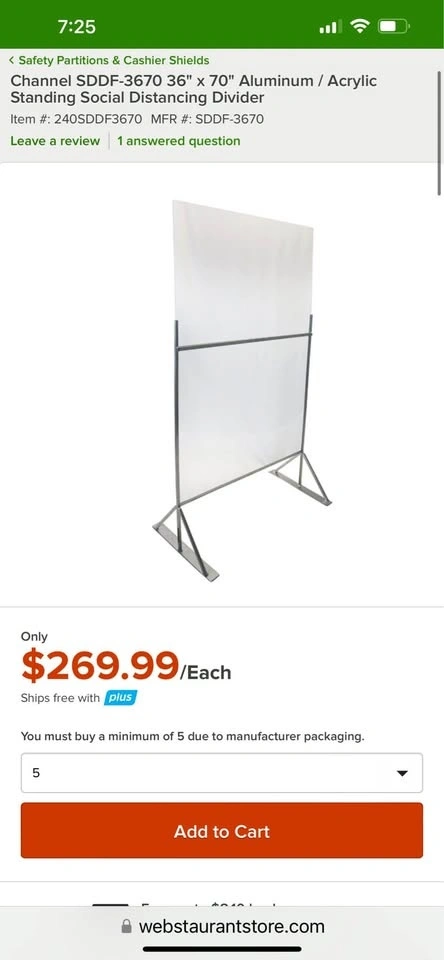 These are used social distancing dividers. The acrylic shows signs of storage and wear. You can see photos of them located in Astoria, Queens 11105. If you see this ad, they are available. If you aren't too far away, I can assist in getting them to you. Message me any time with questions or concerns. You can see how much they normally retail for each at the link provided in the original listing.