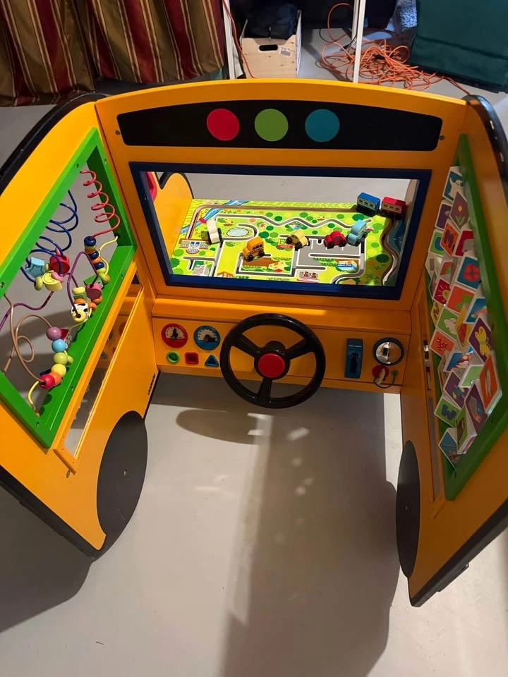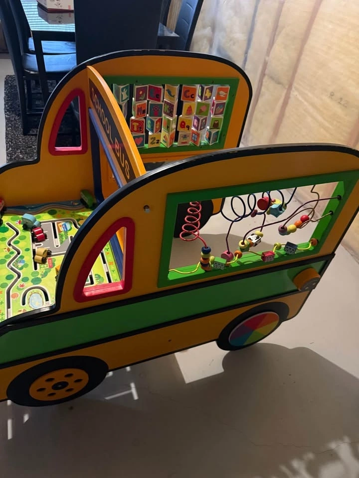 Wooden, sturdy, and packed with activities: bead maze, blocks, road set, cars, and steering wheel. Clean and works great. Perfect for playrooms or daycare. Smoke and Pet Free home. Pick up Rockyridge NW.