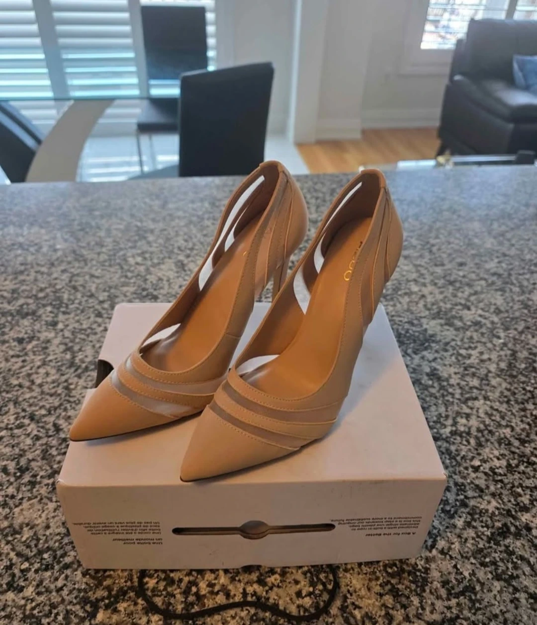 These chic ALDO heels feature delicate mesh inserts for a stylish look. They have a pointed toe and a comfortable height. Comes with the original box. Brand new never worn.