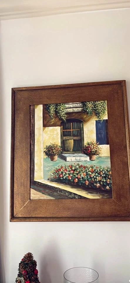 Hand Painted Floral Artwork with Ornate Gold Frame - 24"x20"