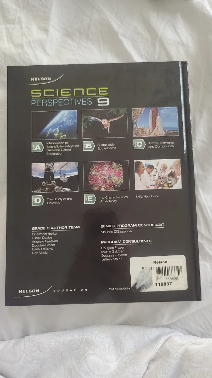 Selling a Nelson Science Perspectives 9 textbook. It's in great condition and ready for a new student