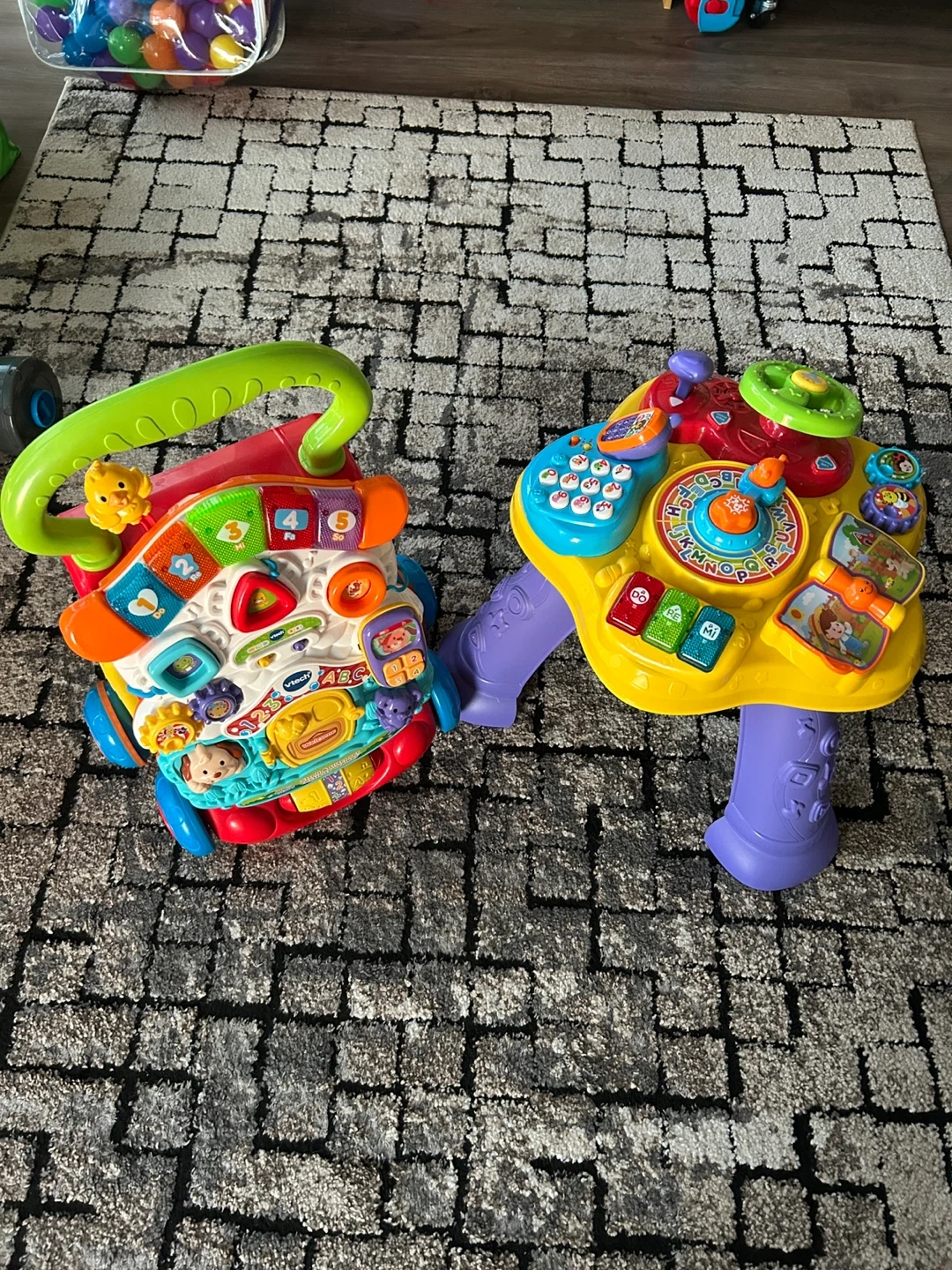 VTech Sit-to-Stand Learning Walker and an activity table. Both are in great condition and ready for a new home! They're perfect for helping your little one learn and explore as they grow and begin to stand and walk. Lots of interactive features and fun sounds to keep them entertained.