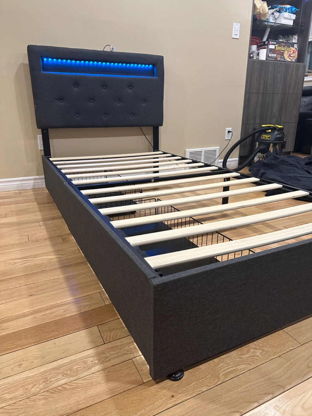 Modern Grey Twin Size LED Storage Platform Bed (CAN DELIVER)
