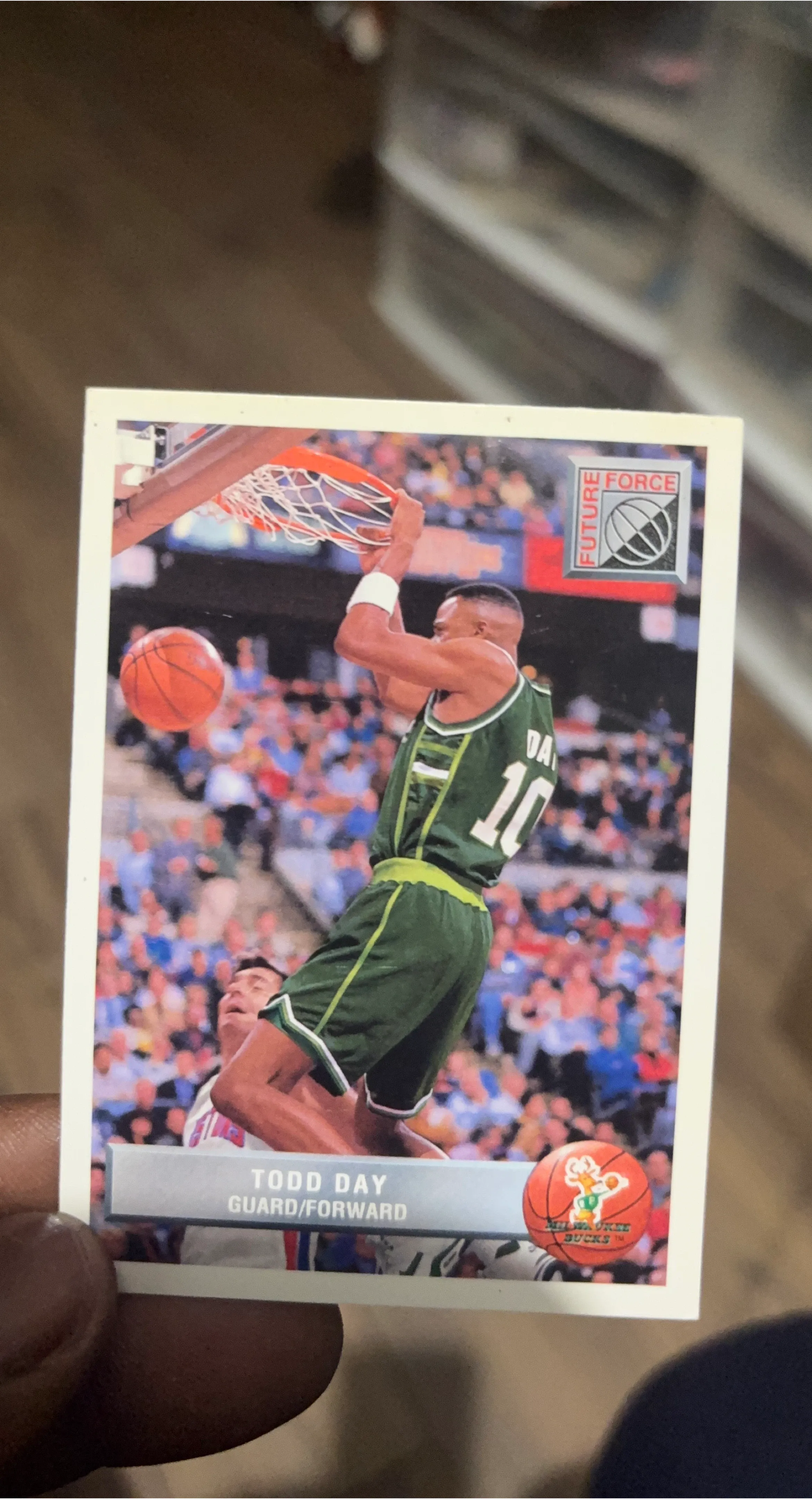 This is a 1993-94 SkyBox "Future Force" basketball card featuring Todd Day. It identifies him as a Guard/Forward. The card also includes the Milwaukee Bucks logo.