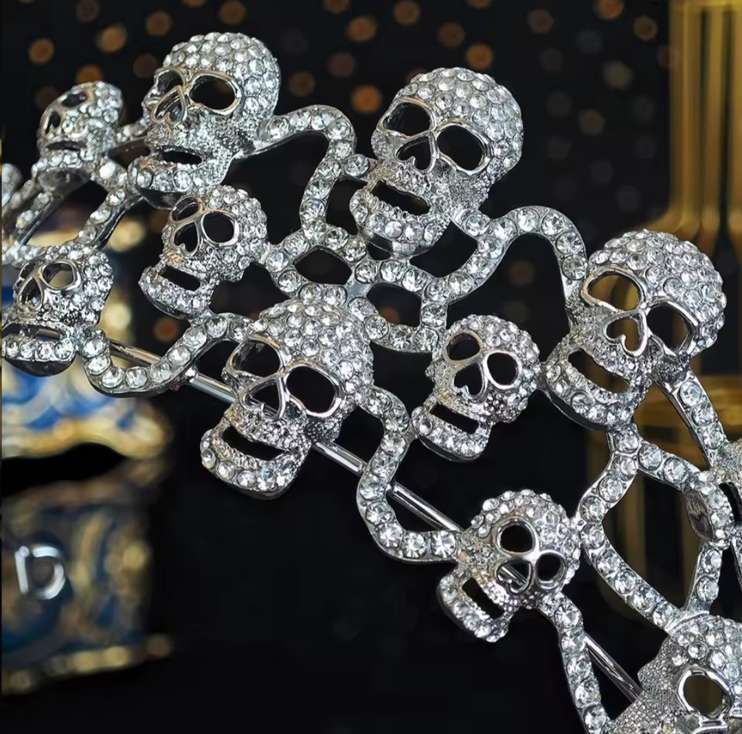 Exquisite shape and design, wear this hair accessory at your party, you must be the star of the night. Halloween Skull Hair Band Tiara Rhinestone Tiara Skull Design Crown Tiara