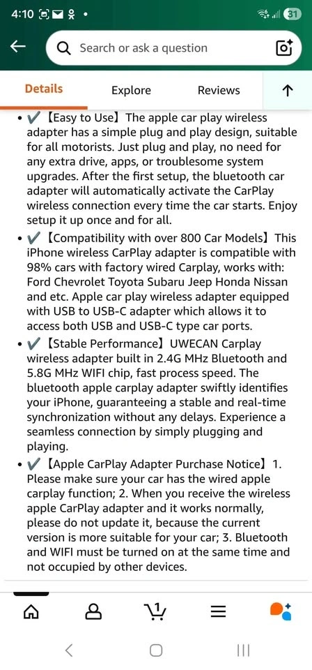 Buy & SellAndroid Auto wireless AdapterAndroid Auto wireless Adapter$20Brand new in the box.WHERE TO MEETCheck LocationView MapSELLERALEX BILLIARDConcord150 reviews0 chats·1 favorites·9 viewsSEND CHAT TO SELLERHi ALEX BILLIARD! I’m interested in your listing.Hi ALEX BILLIARD! I’m interested in your listing.Get the Karrot app to chatSign In to chat
