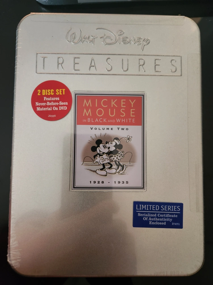 Selling a Walt Disney Treasures 2-disc set featuring Mickey Mouse in Black and White, Volume Two! This limited series DVD collection comes with a serialized certificate of authenticity enclosed. It features never-before-seen material on DVD from 1928-1935