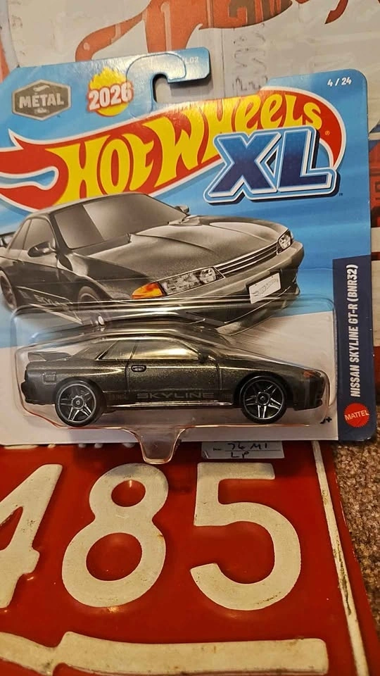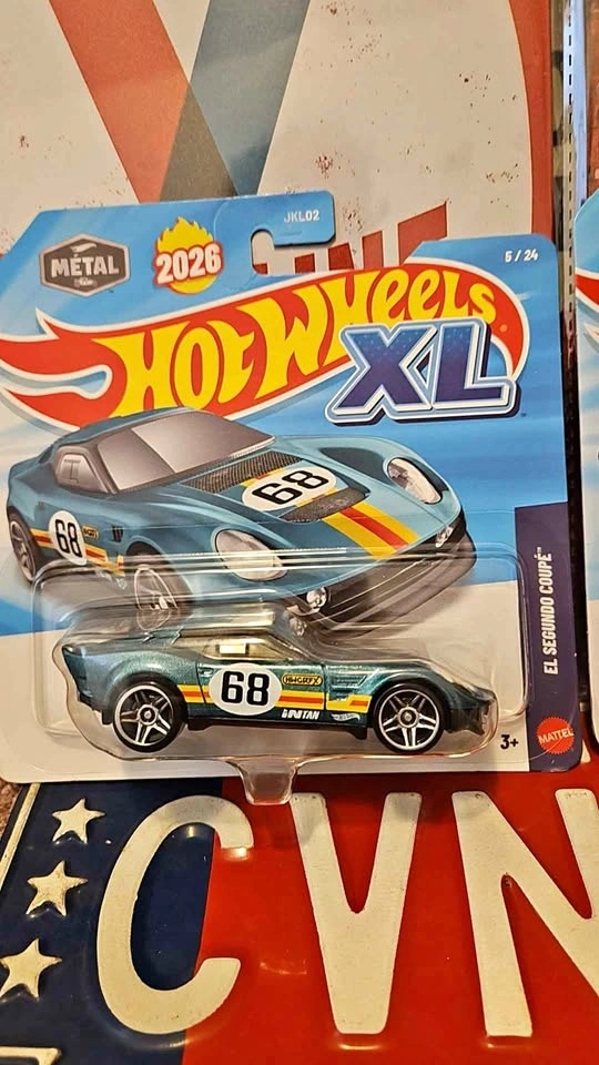 Got these two Hot Wheels XL cars from the 2026 series. The El Segundo Coupe is number 5/24, in cool blue/green with race stripes. The Nissan Skyline GT-R (BNR32) is number 4/24, in slick dark gray. Both are still in their original packaging and have never been opened. Great for collectors or just for fun!