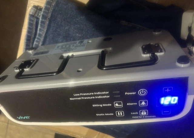 For sale is a lightly used Vive low-air-loss pressure air mattress with a highly customizable digital pump. This active mattress replacement system provides alternating pressure and low air loss to optimize pressure redistribution, reduce shear/friction, and control microclimate. It's for home use only. The 18 individual air bladders can be adjusted for desired firmness via the pump. It also features static and alternating therapy modes. Dimensions are 36”x 80” with an 8” height. A fully electric adjustable bed (with side rails) is available for an extra $300, and a hospital bed table is available for an extra $50. Delivery to your home is free and available.