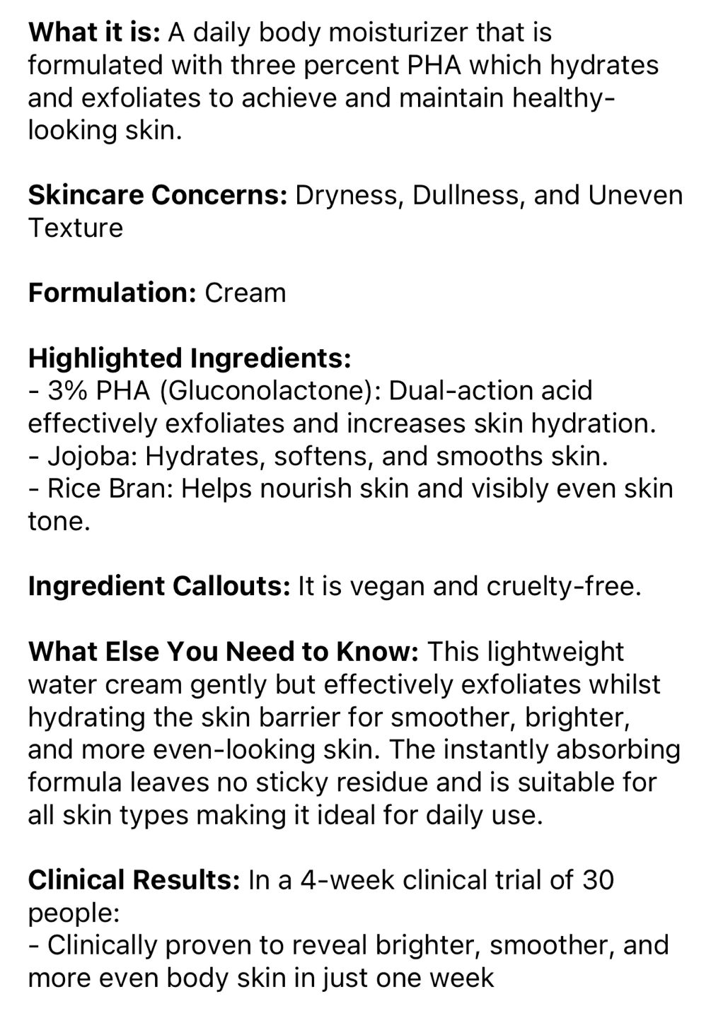 Buy & SellTHE INKEY LIST PHA Exfoliating and Hydrating Body Water CreamTHE INKEY LIST PHA Exfoliating and Hydrating Body Water Cream$15Brand new !ConditionNewWHERE TO MEETRichvaleView MapSELLERverifiedGabRichvale35534 reviews0 chats·0 favorites·2 viewsSEND CHAT TO SELLERHi Gab! I’m interested in your listing.Hi Gab! I’m interested in your listing.Get the Karrot app to chatSign In to chat