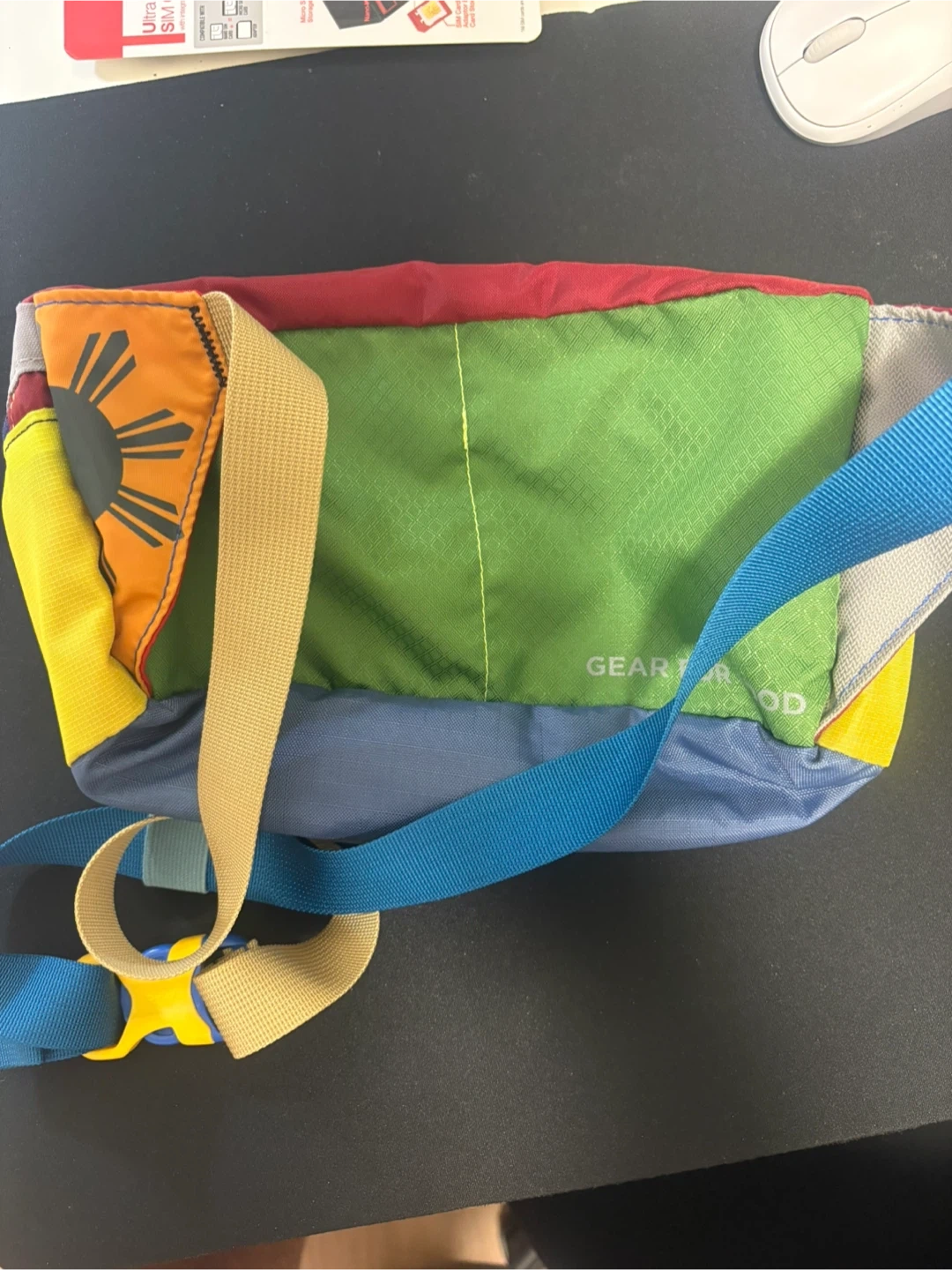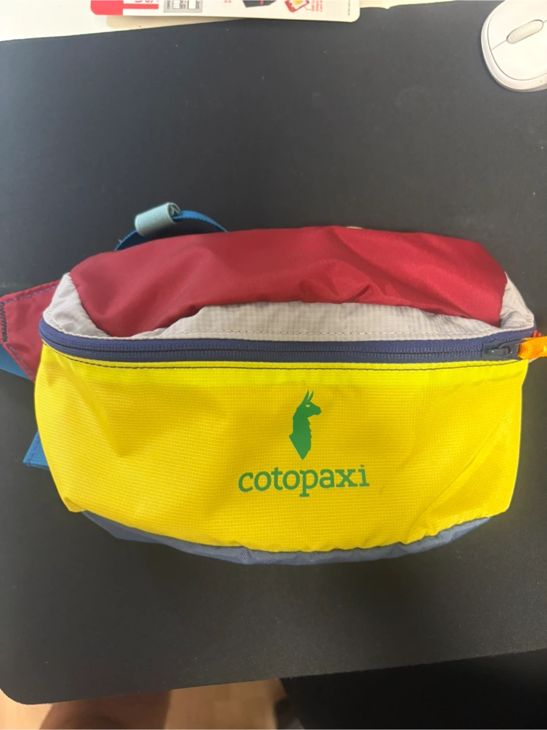 This Cotopaxi fanny pack has a colourful, unique design. It's a great size for carrying essentials while on the go. This pack is perfect for day trips or festivals!