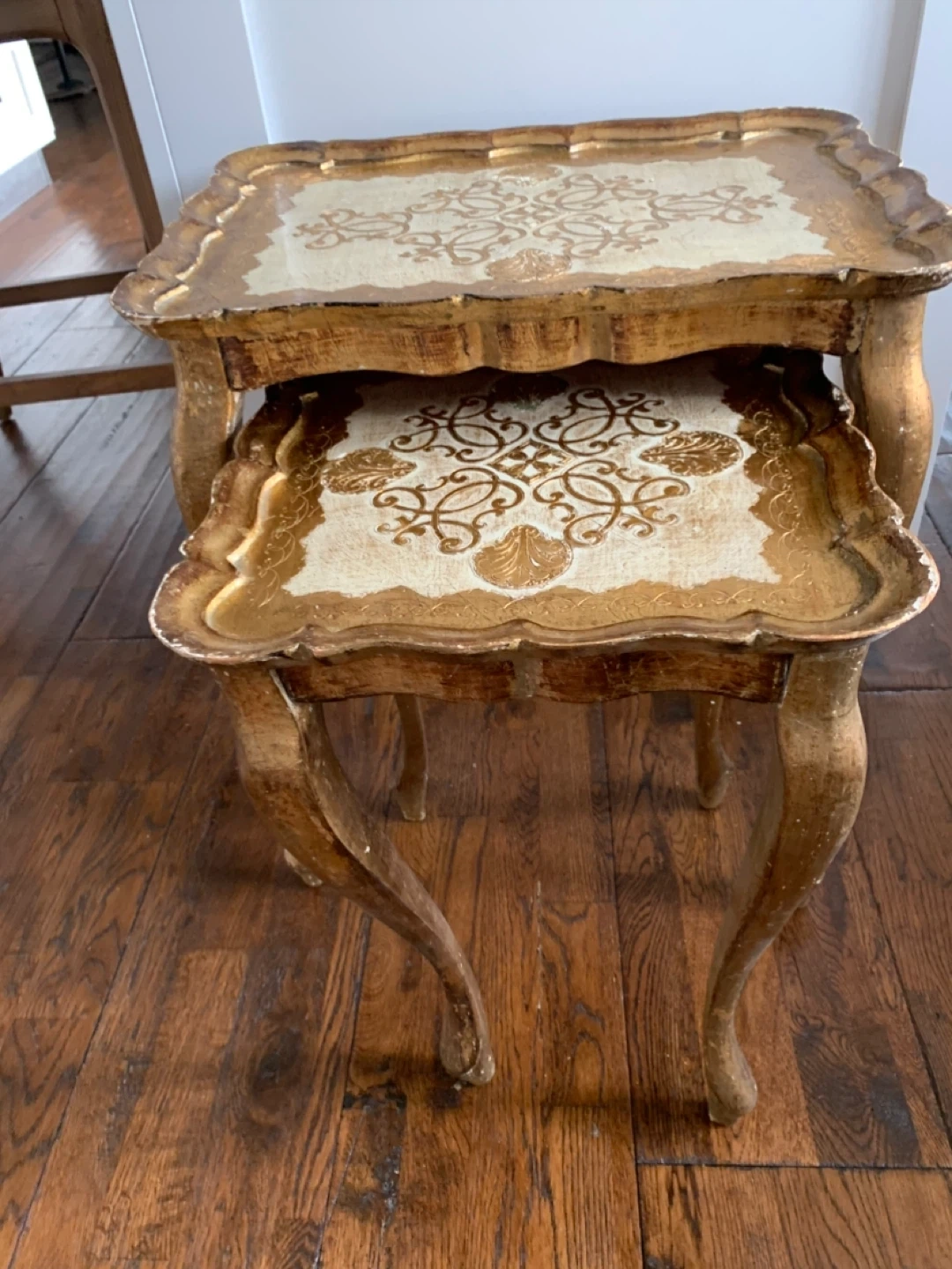 ✨ Vintage Gold Leaf Nesting Tables – Elegant & Timeless! ✨