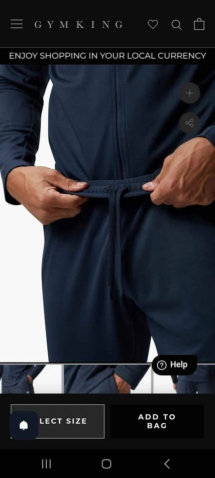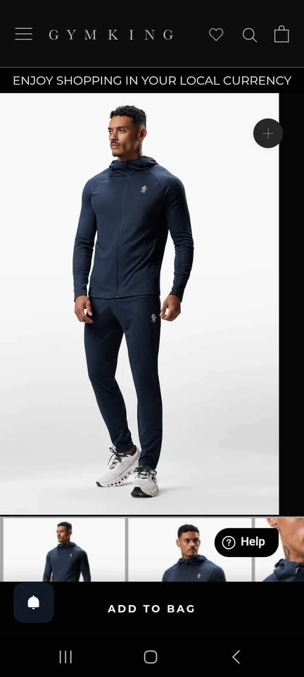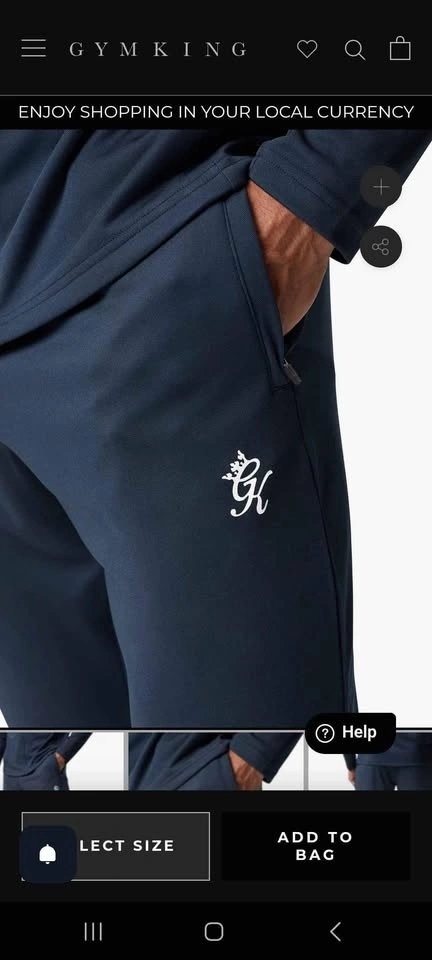 Men's XL tracksuit bottoms. Slim fit with a rubber print Gym King logo on the front leg. Lightweight and breathable material with considered cut lines. Features an elasticated waistband with internal drawcords and zip pockets. Matching zip hoodie jacket available. Machine wash at 30°C. 100% Polyester.