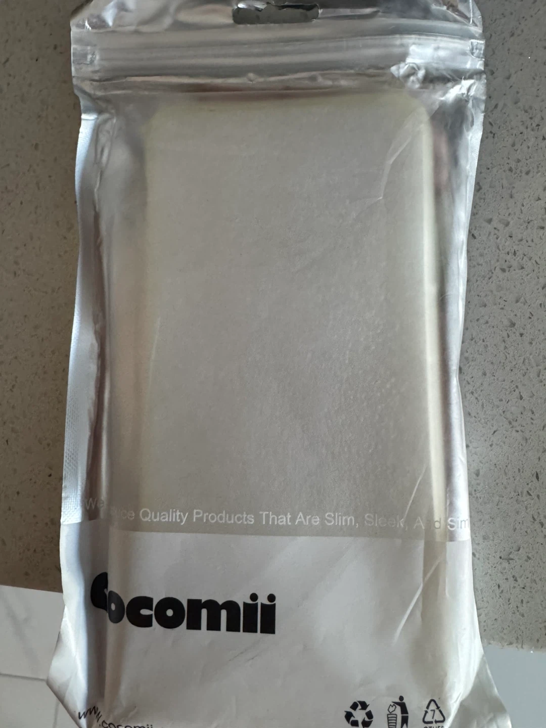This Cocomii phone case features a geometric marble design with pink and glitter accents. It's designed for a slim, sleek fit. Protects your phone with style!