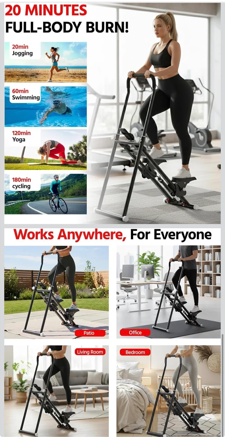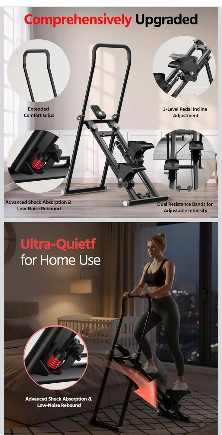 Stair Stepper for Home Gym Exercise, New Version Compact Folding Stair Climber with Quiet Shock-Absorbing Spring, Adjustable Resistance, Long Foam Grip, Stairmaster for Full-Body Workout Equipment