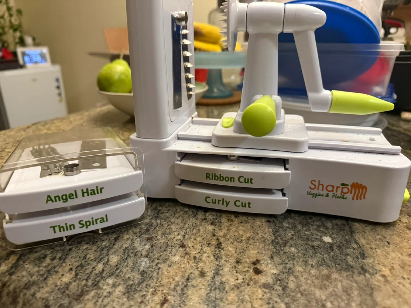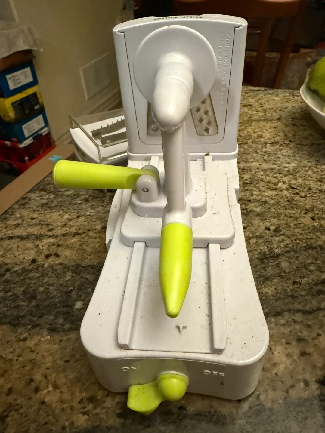 Spiralizer. In excellent shape. Suctions onto counter. Selling because not using it and have too many kitchen gadgets and not enough room.