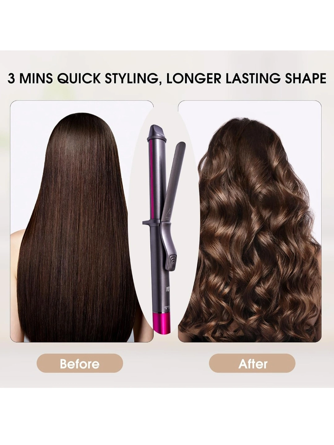 【100-240V Worldwide Voltage & 360°Swivel Cord】The wide voltage design allows the curling wand to be used in different countries, making it an ideal choice for travel. The 360°swivel 8.86 foot power cord allows you to adjust the hair curling iron freely and comfortably style your hair at any angle.