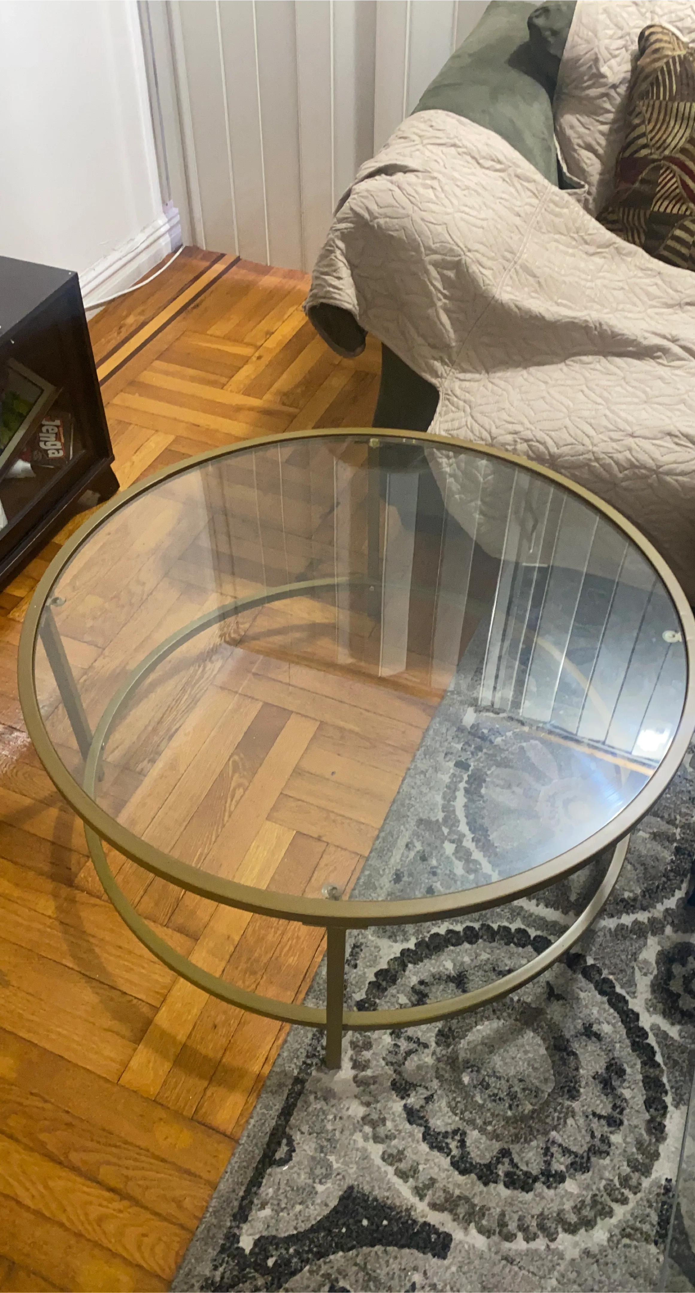 Round Glass Top Coffee Table with Gold Frame