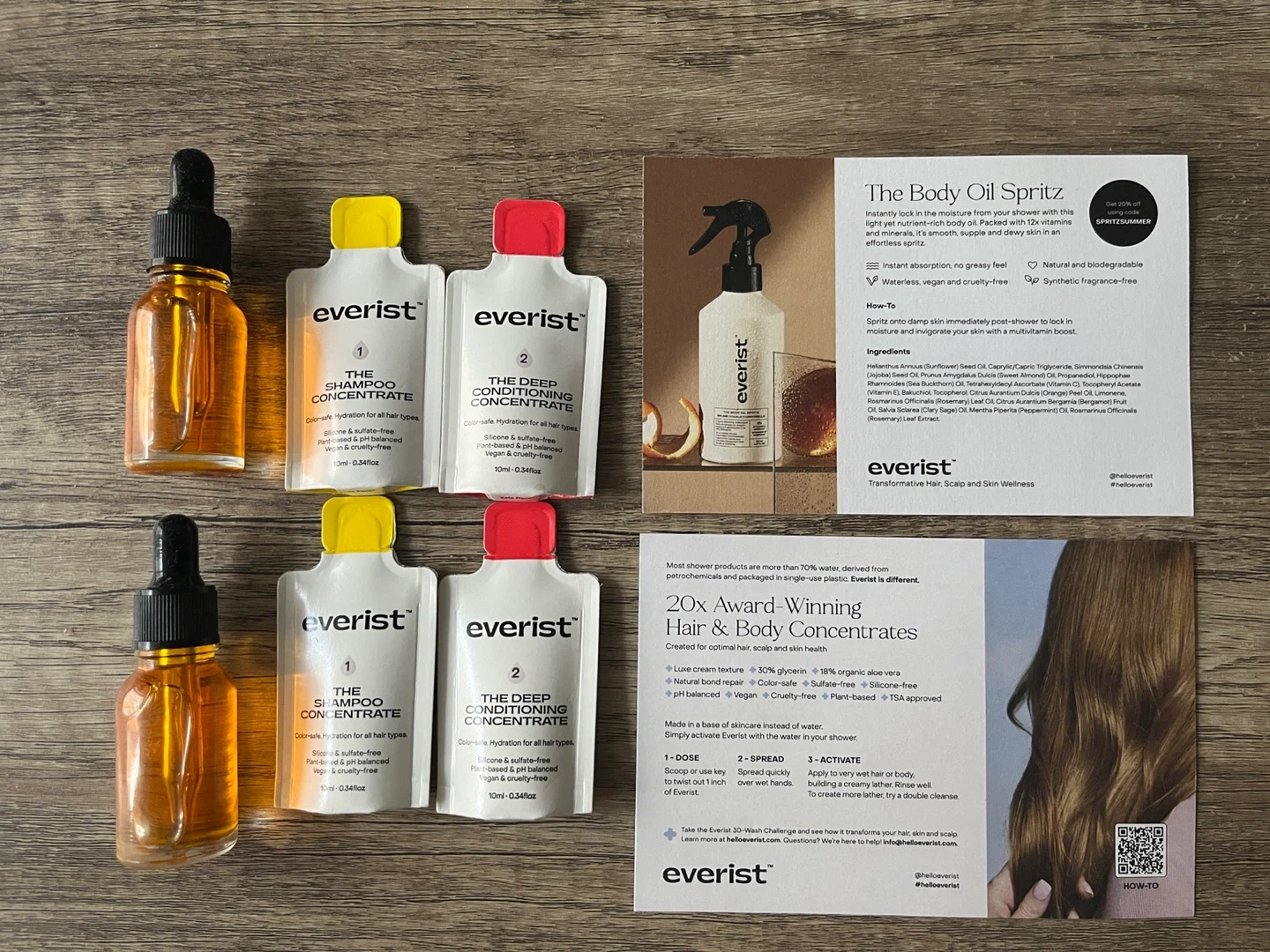 $3 each or take all six items for $15. Travel-sized 10mL shampoo and conditioner concentrates, as well as body oils. These are colour-safe, silicone & sulfate-free, plant-based, vegan, and cruelty-free. They're designed for all hair types, providing hydration.