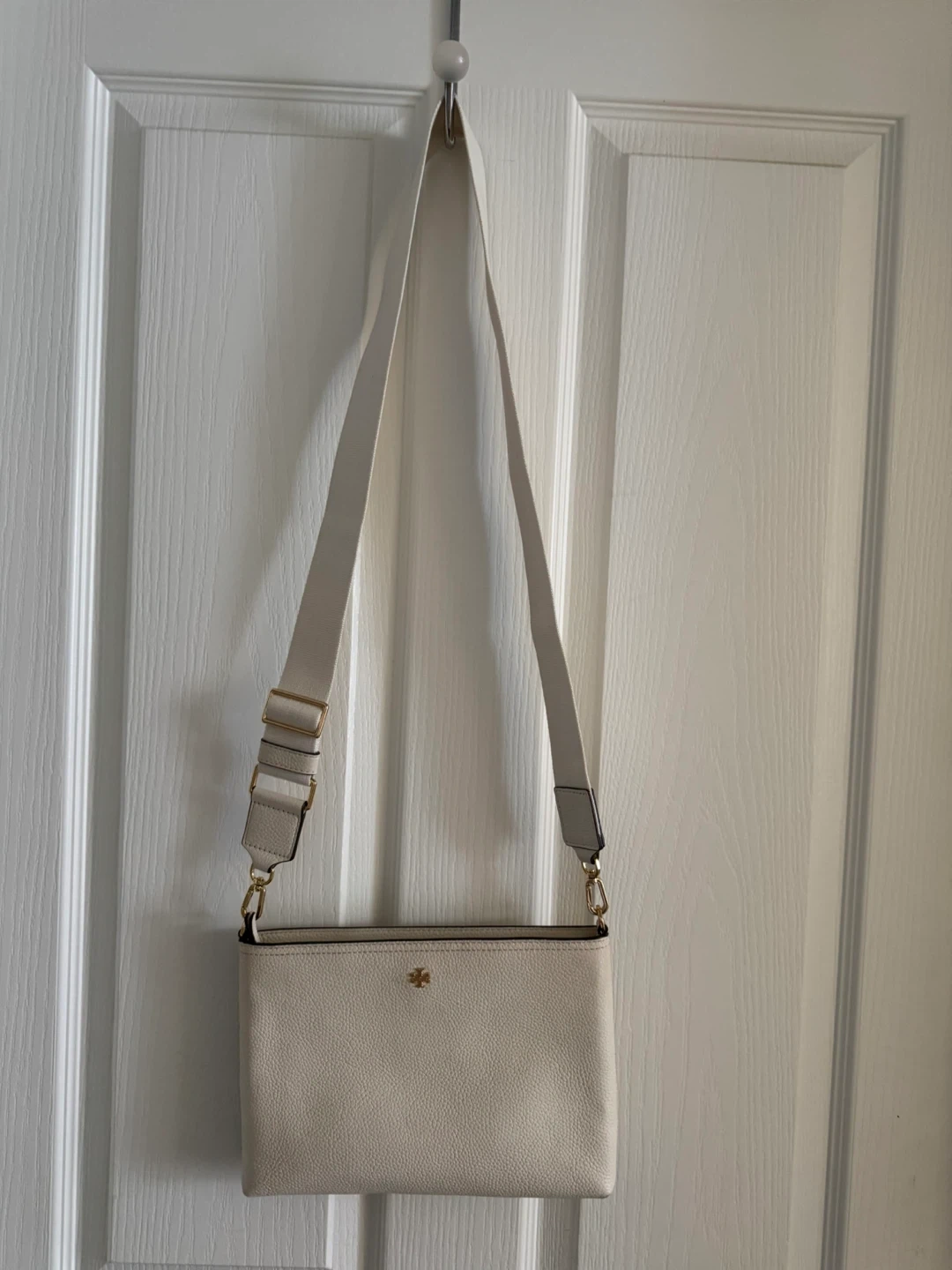 Selling a beautiful Tory Burch crossbody bag in a neutral beige colour — perfect for everyday use or as a stylish accessory for any outfit.