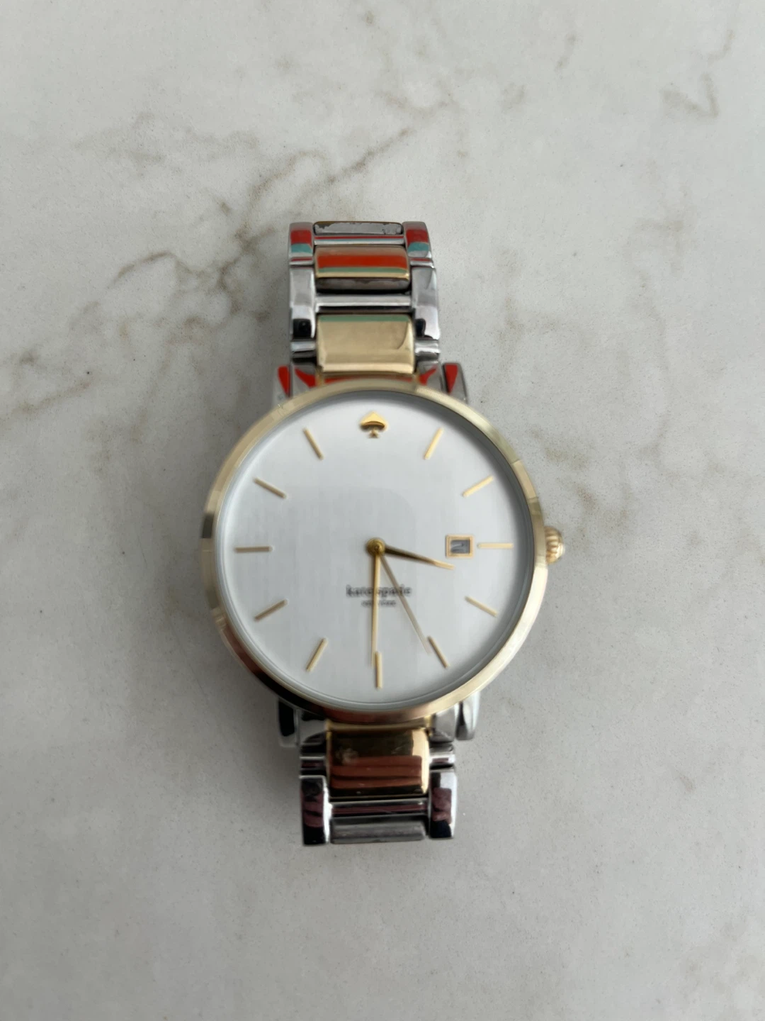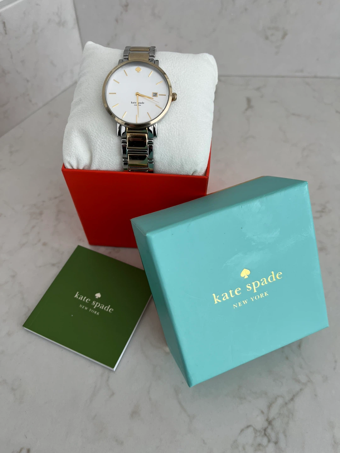 Selling a Kate Spade New York watch in gold and silver. It comes with the original box and booklet. It's in great condition and ready for a new home!