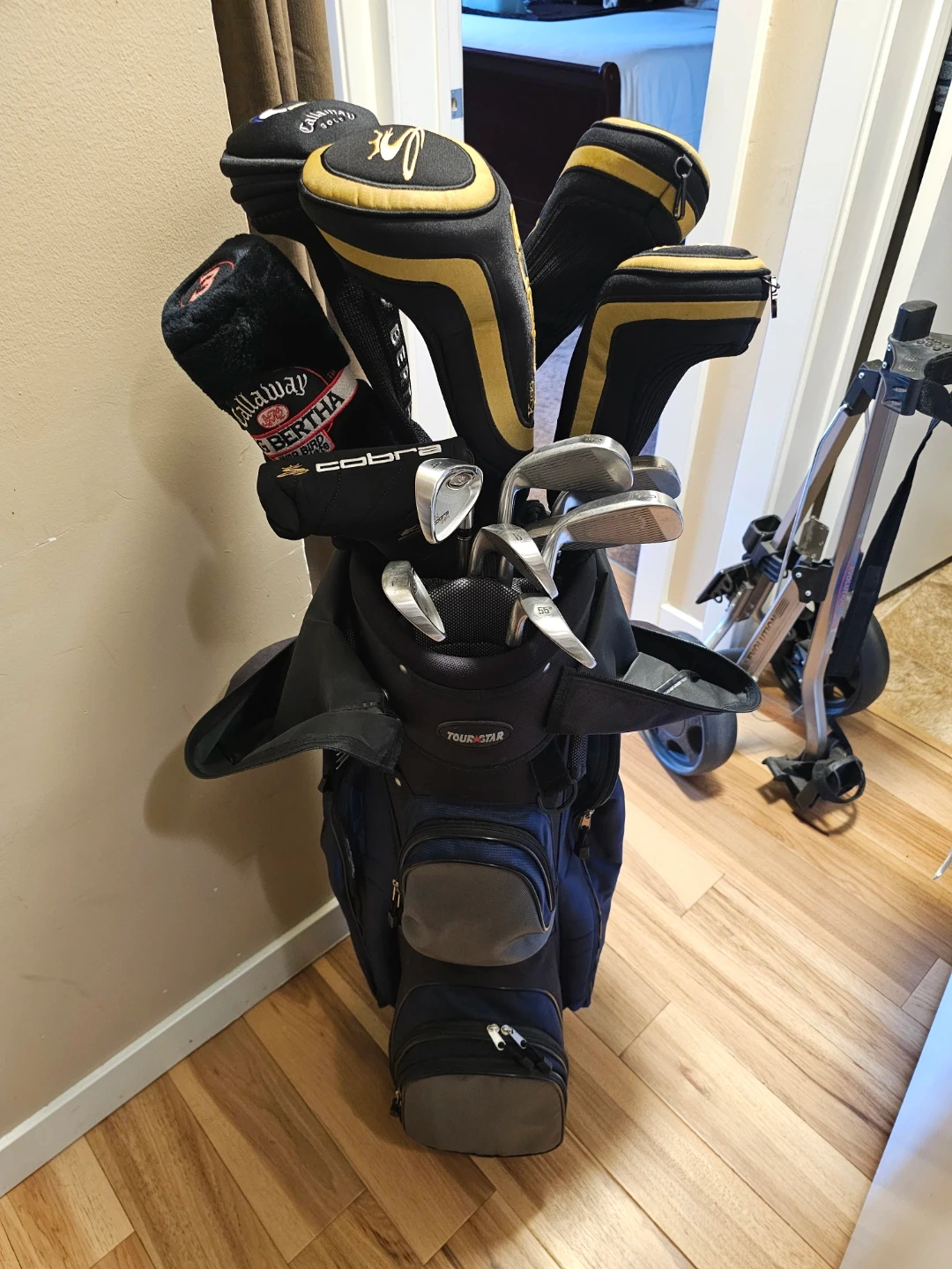 Includes 13 perfect condition Golf clubs with a couple Callaway Clubs