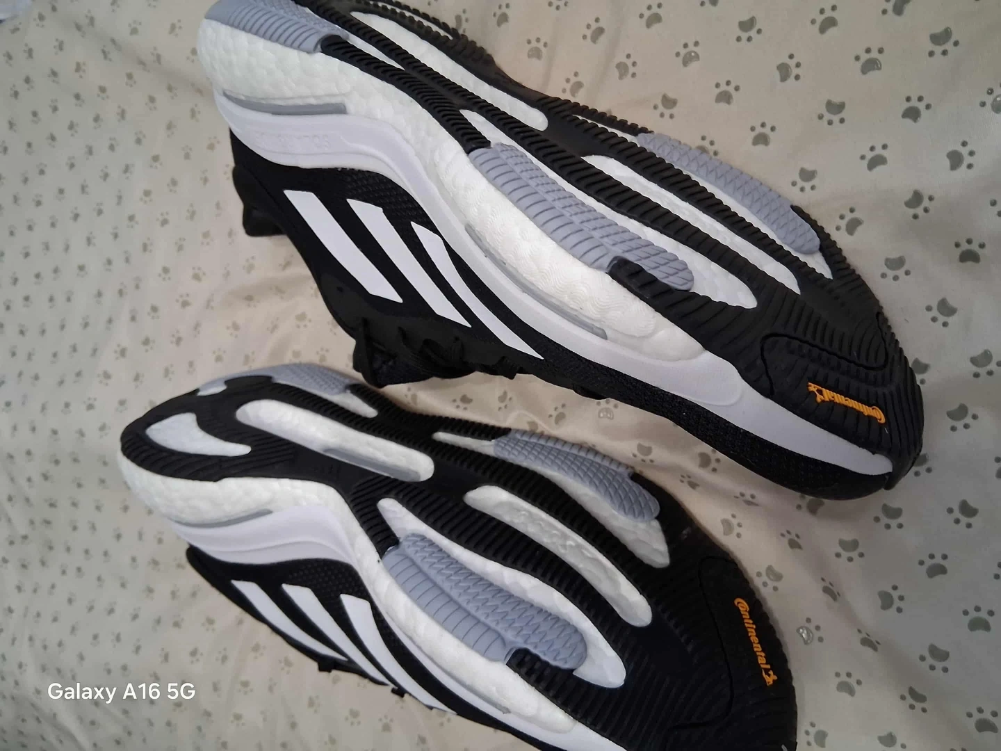 Selling a pair of Adidas Solar Glide 5 M running shoes in black and white. These are size 13 in men's. The shoes are designed for running and course road. They feature Adidas Jet technology for a comfortable stride.