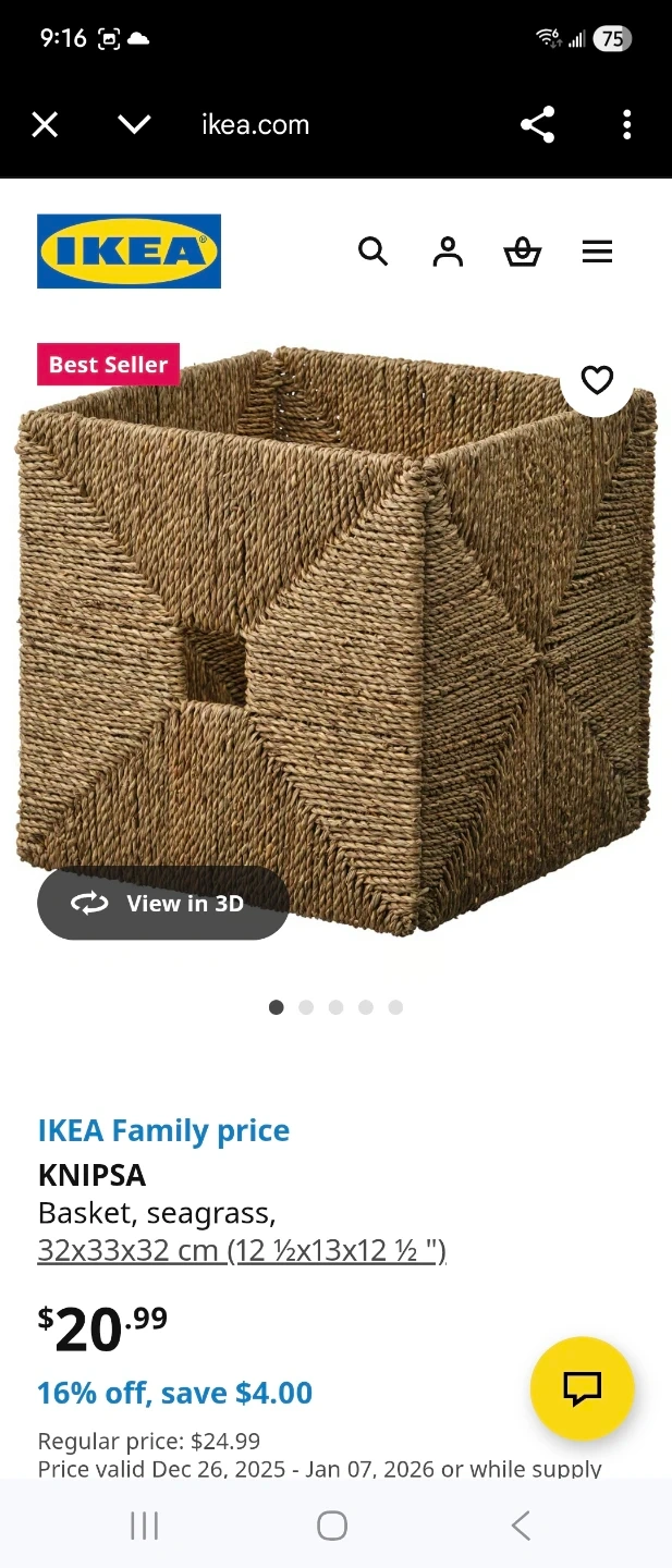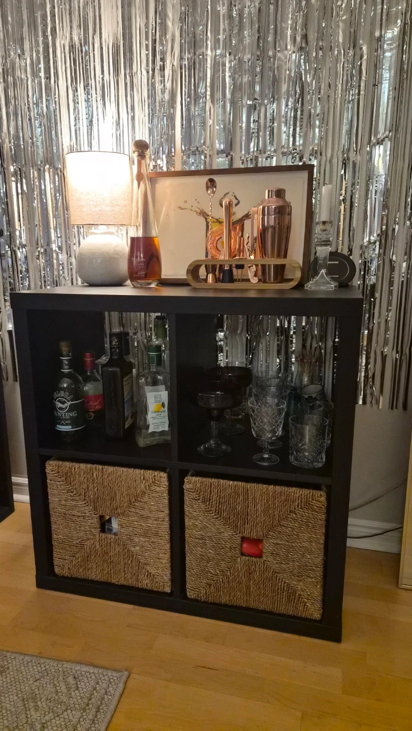 Selling an IKEA KALLAX shelf unit price in IKEA $59, with two KNIPSA baskets in seagrass colour. It measures 32x33x32 cm (12 1/2x13x12 1/2 "). The regular price is $24.99.