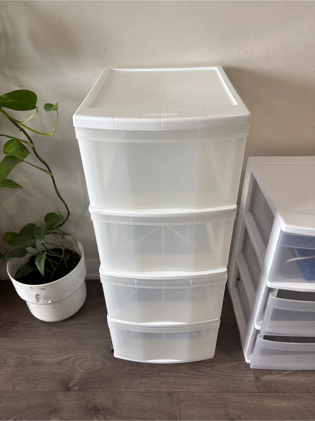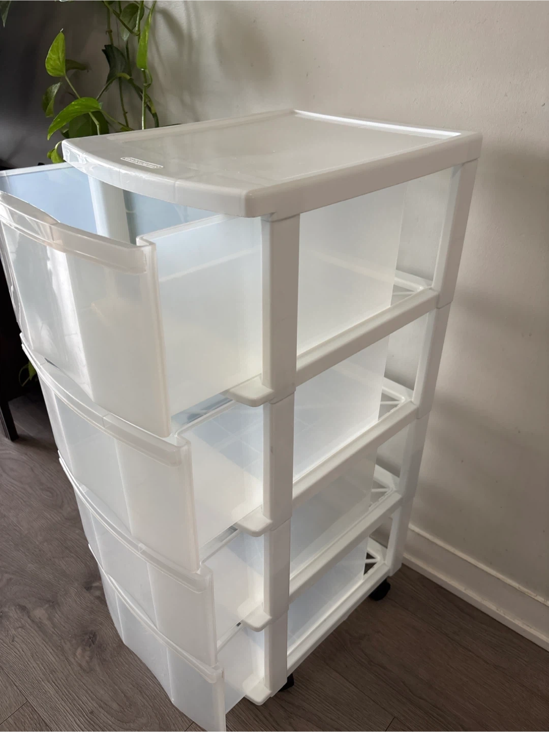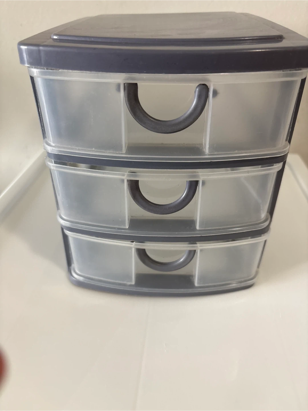 This is a 3-drawer plastic storage unit. It's great for organizing small items. The drawers slide smoothly. And a 4 drawer plastic storage gracious brand