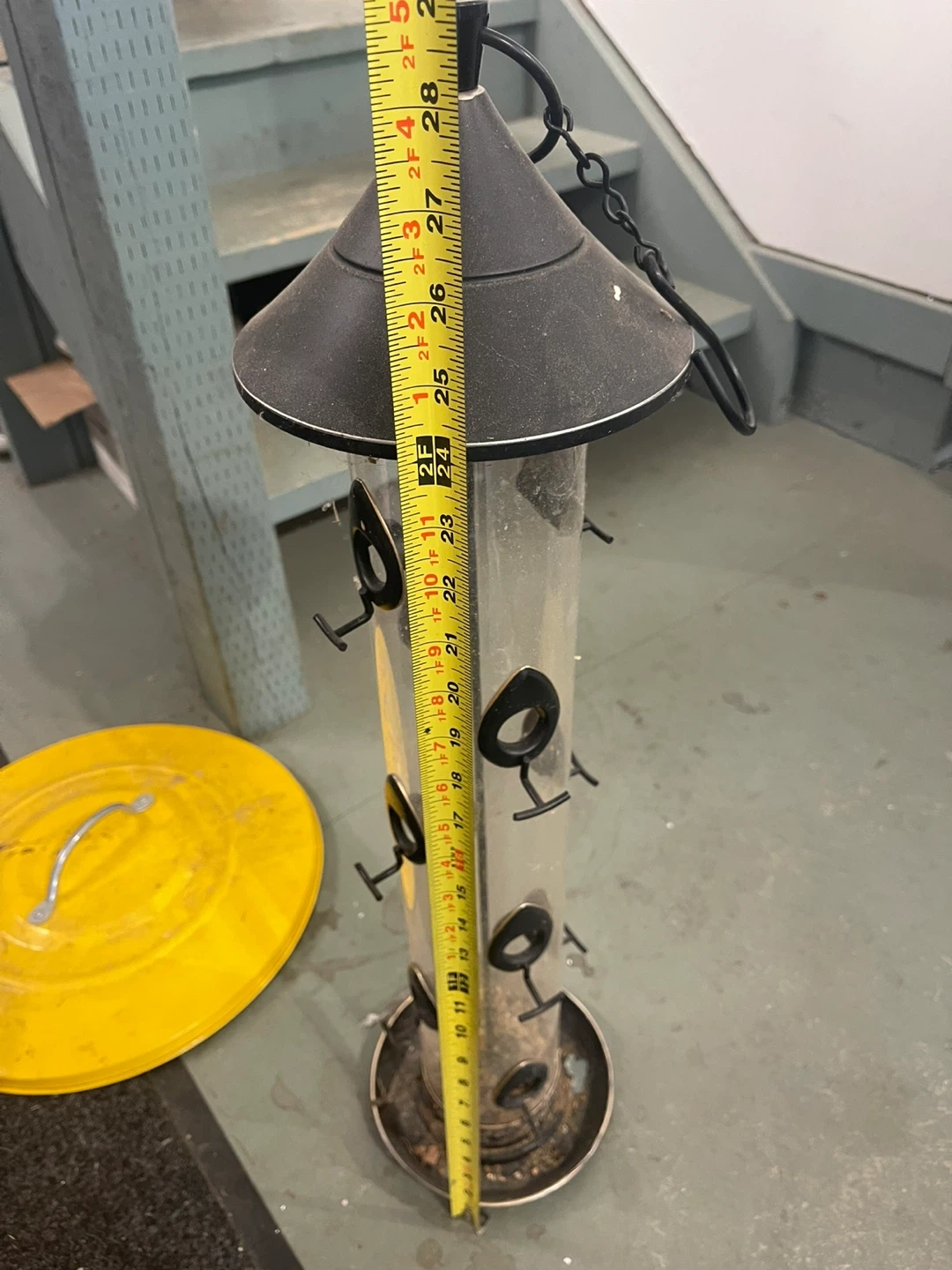 Selling a used tube bird feeder. It stands approximately 28 inches tall. It has multiple feeding ports for birds to enjoy. It's a great addition to any backyard!