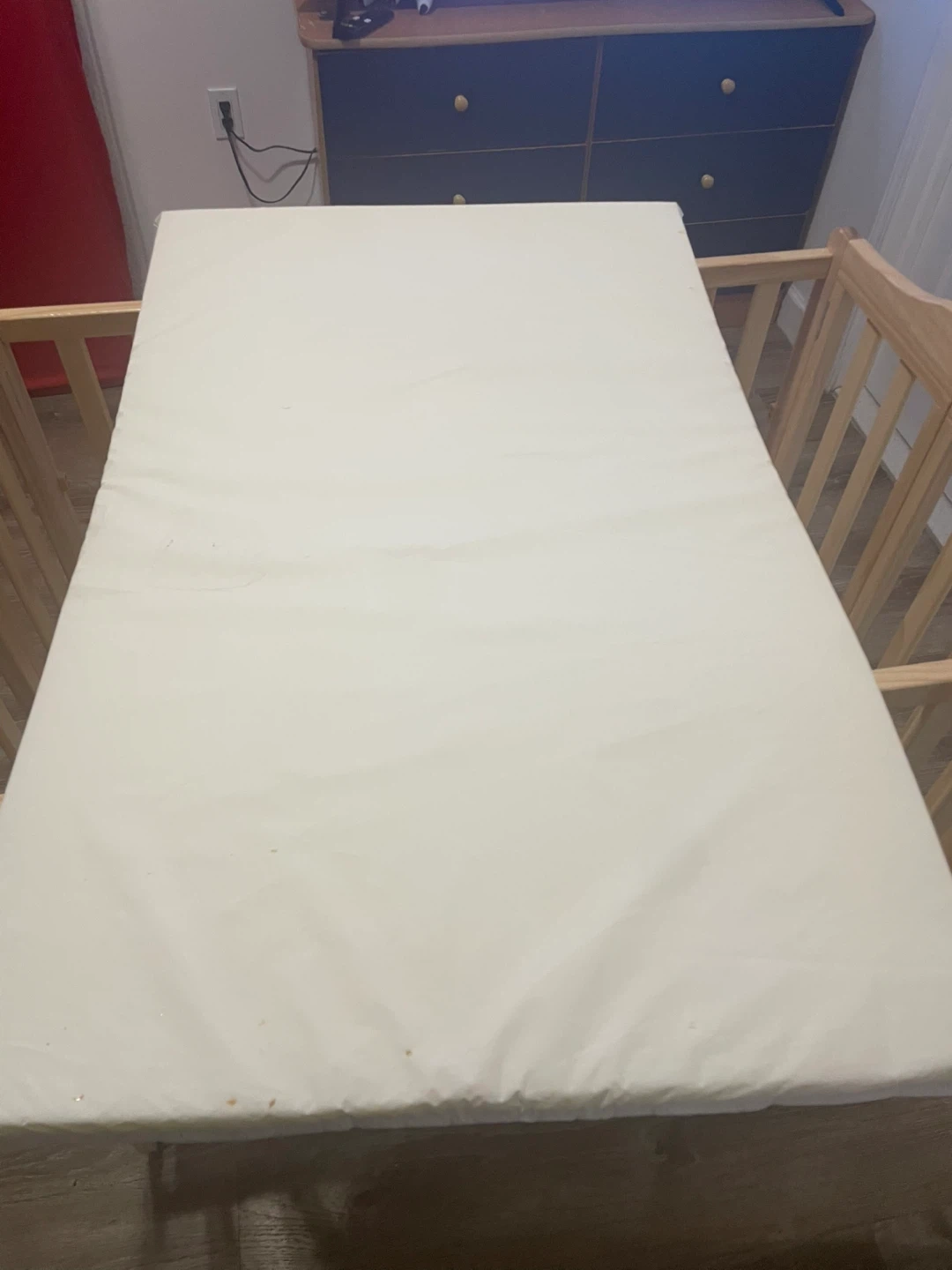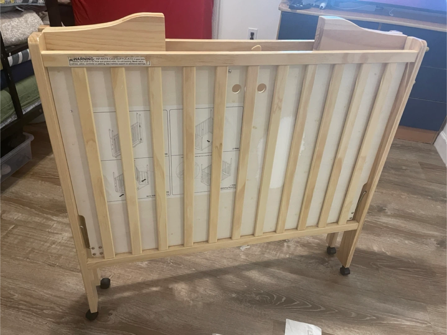 We also have a folding crib and its thin mattress available.