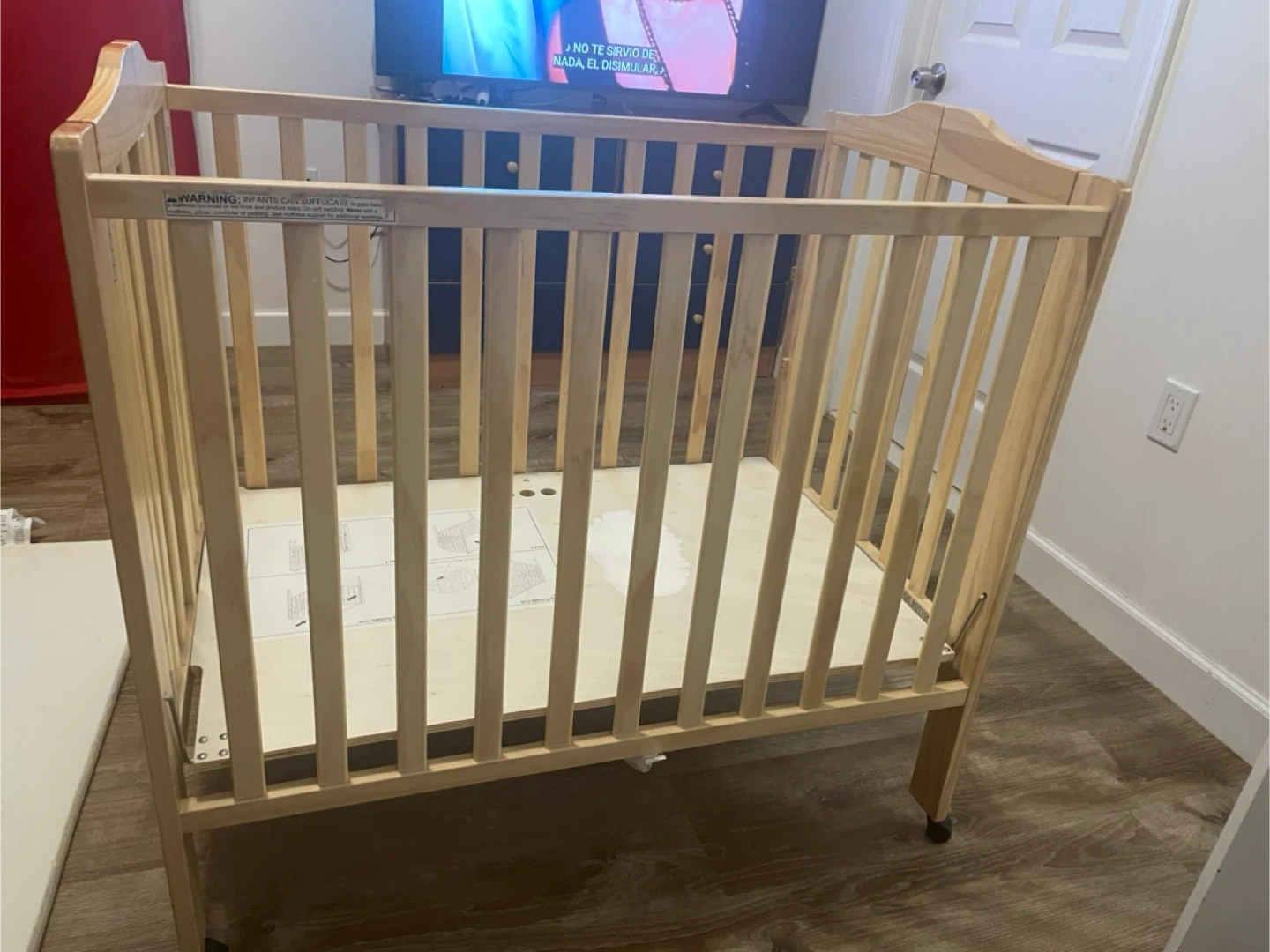We also have a folding crib and its thin mattress available.